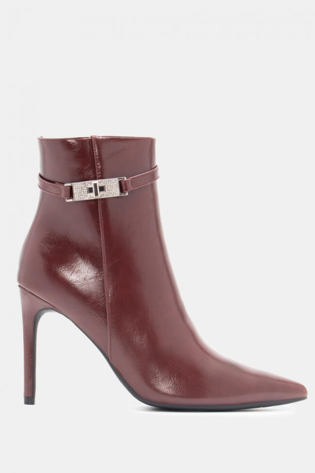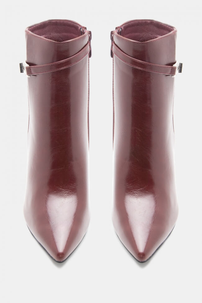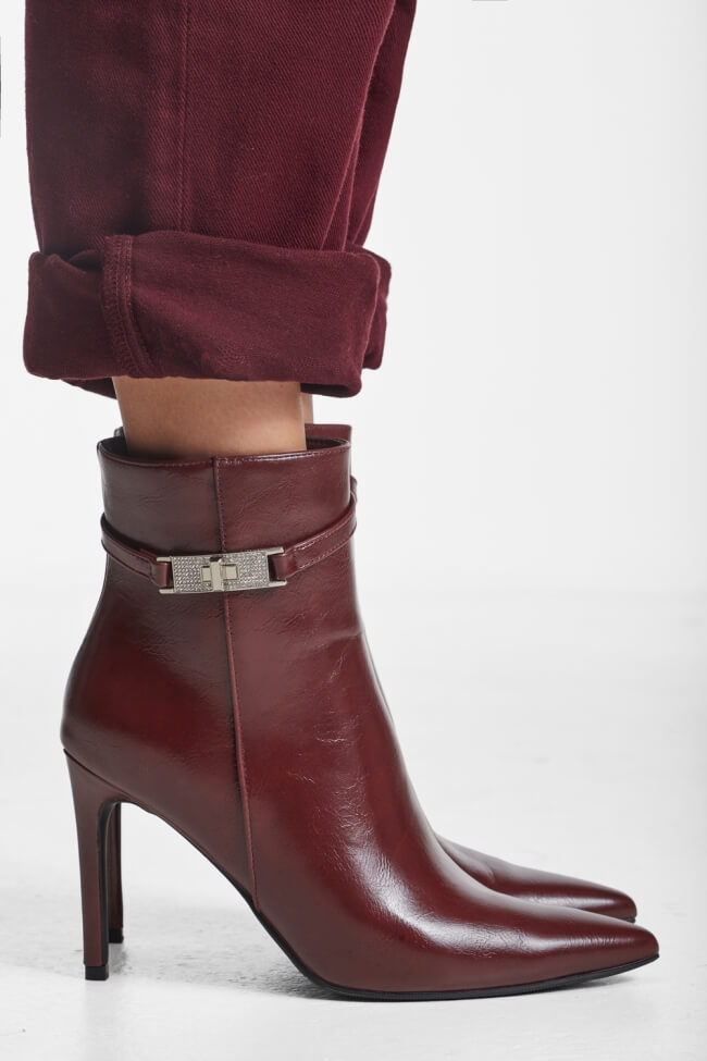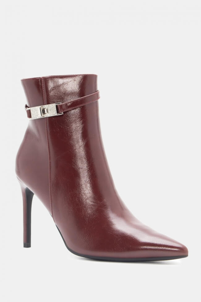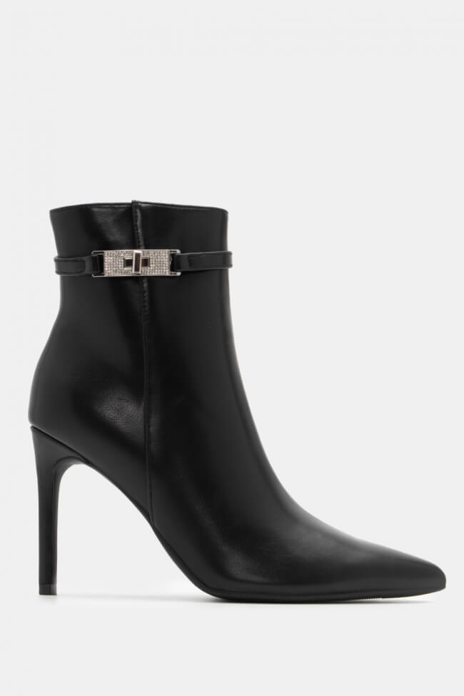 Botine cu Vârf Ascuțit cu Curea Decorativă & Strass