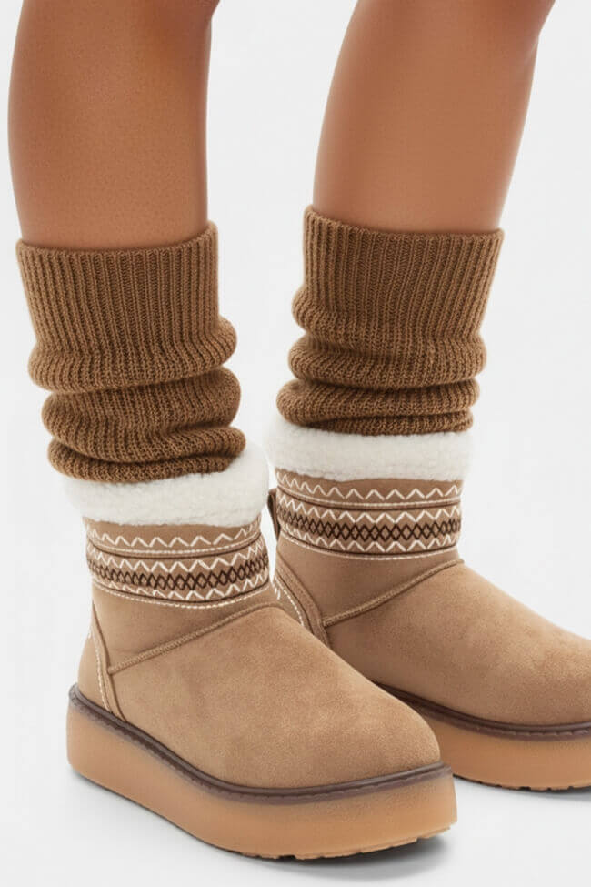 Botine cu Căptușeală Interioară din Blană & Broderie
