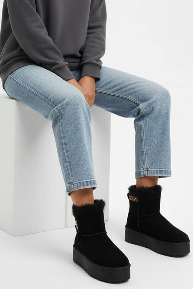 Botine cu Căptușeală Interioară din Blană & Fermuar
