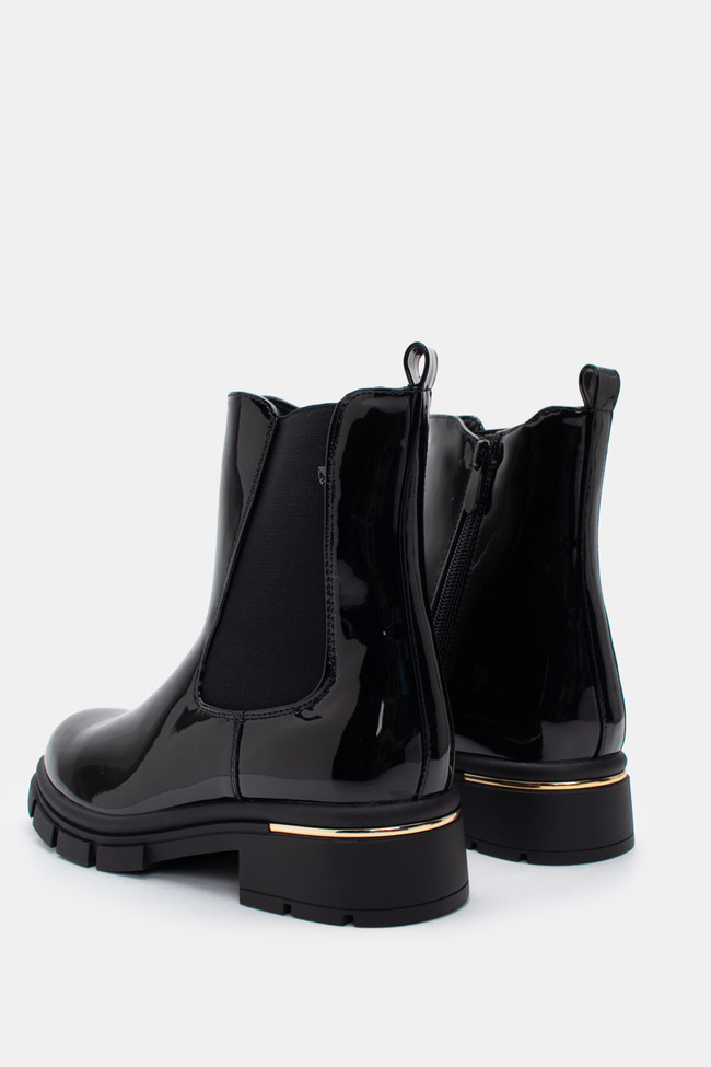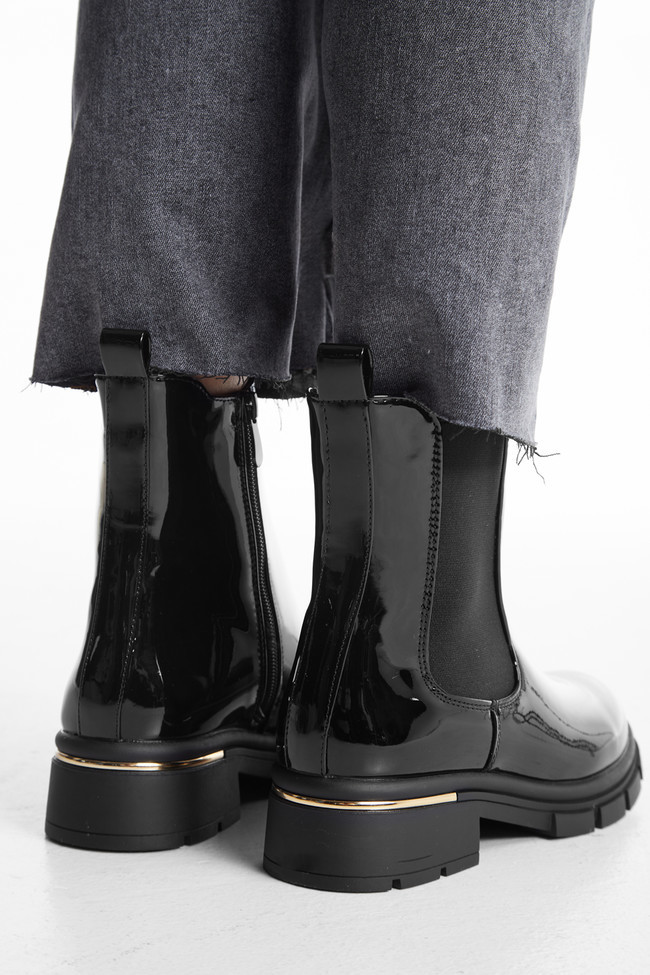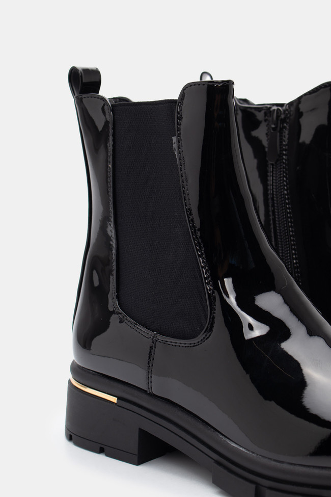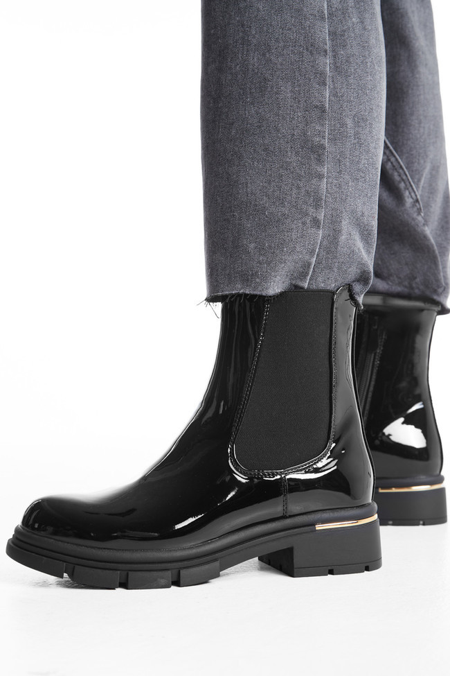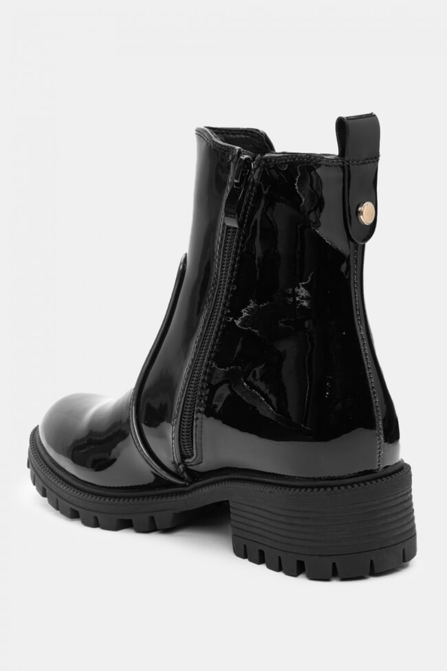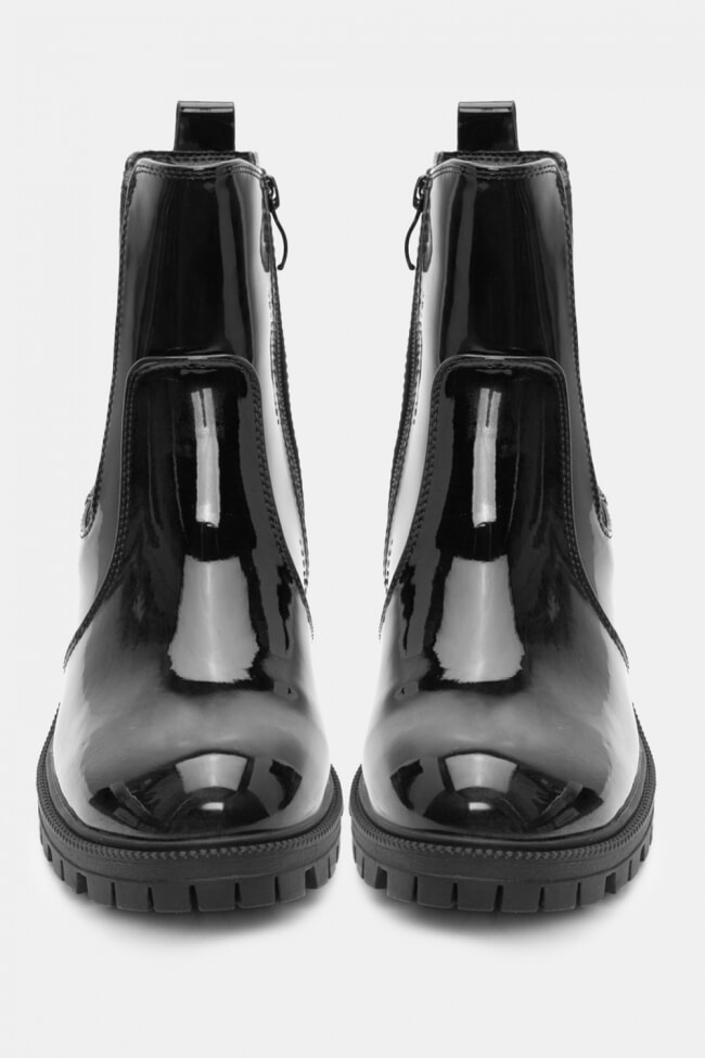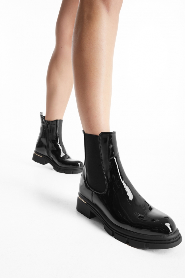 Botinele fără toc din lac oferă o notă glossy fiecărei ținute. Ideale pentru o apariție mai chic și impresionantă, adaugă acea notă perfectă unei ținute casual.