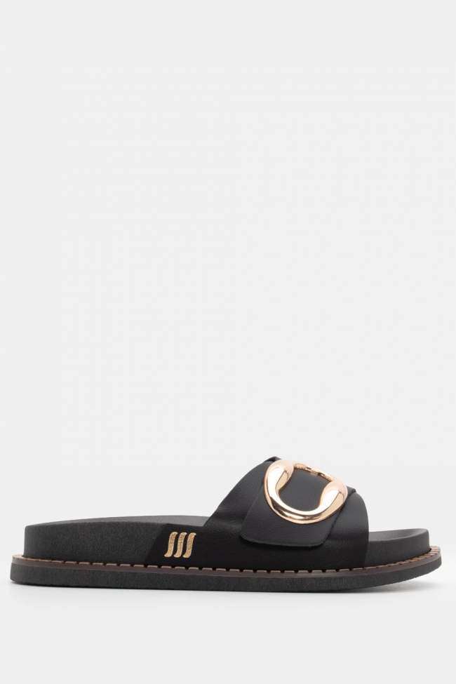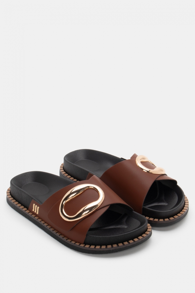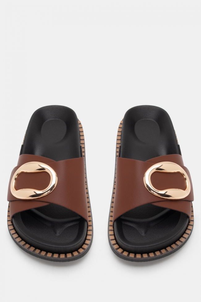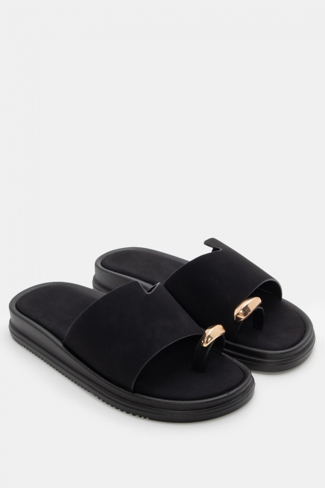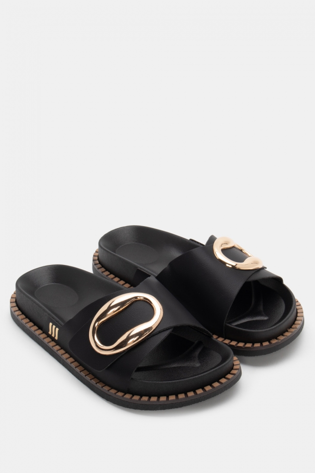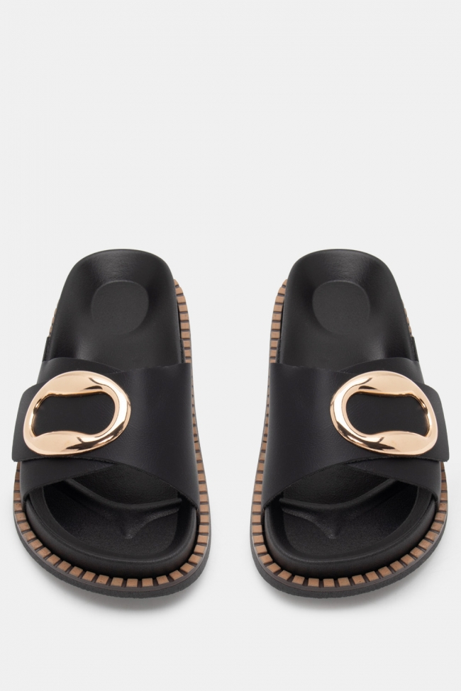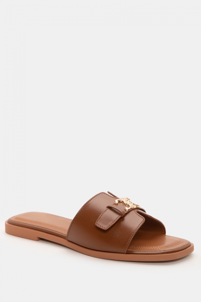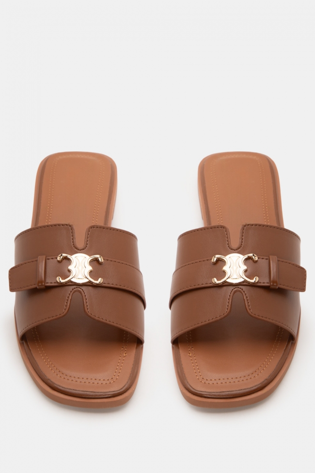 Sandale flat cu detaliu metalic