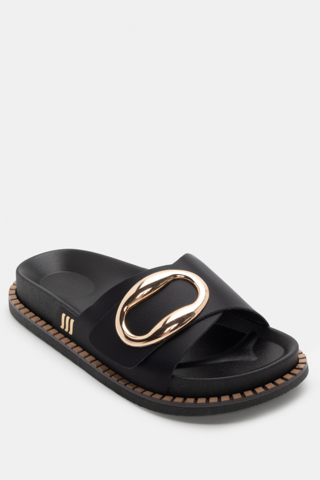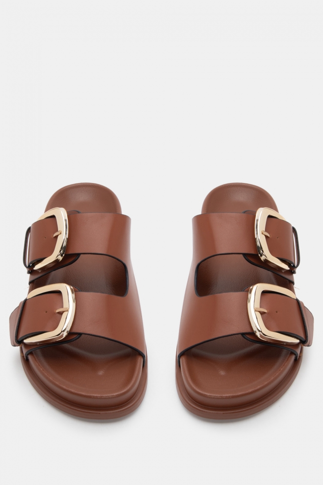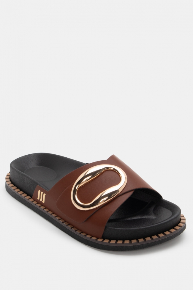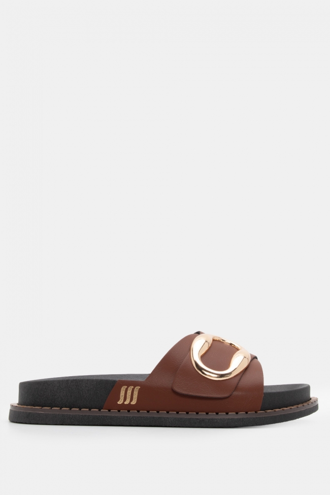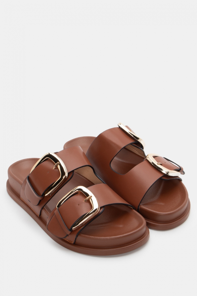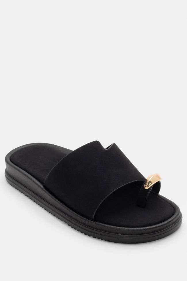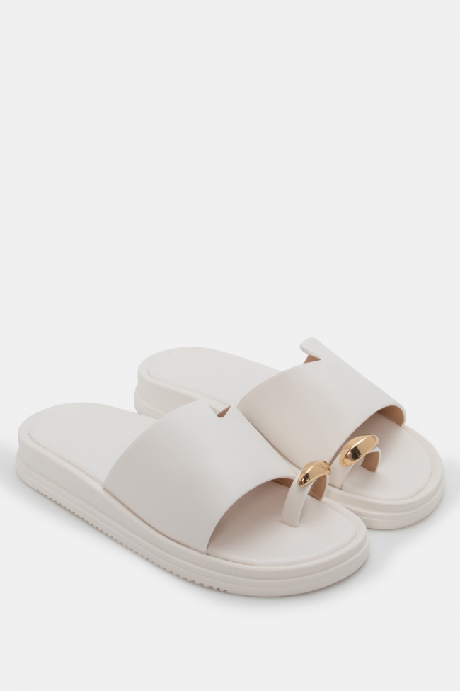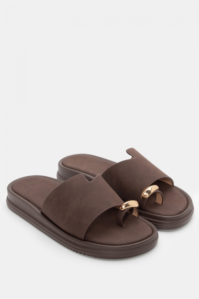 Sandale flat cu detaliu metalic