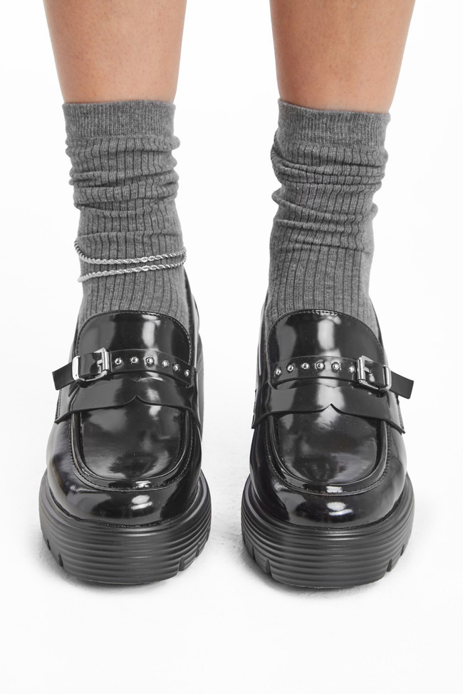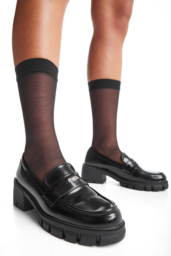 Alege loafere înalte cu detalii metalice sau în texturi specifice, precum catifeaua sau lacul, și poartă-le cu o rochie maxi sau o fustă mini pentru un rezultat glam.