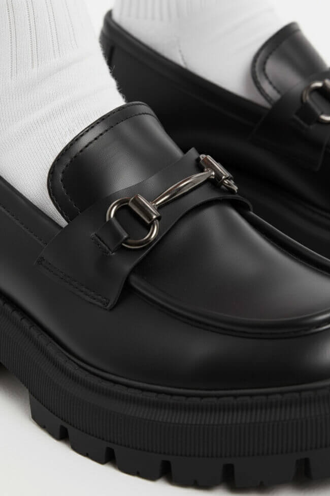 Alege loafere înalte cu detalii metalice sau în texturi specifice, precum catifeaua sau lacul, și poartă-le cu o rochie maxi sau o fustă mini pentru un rezultat glam.
