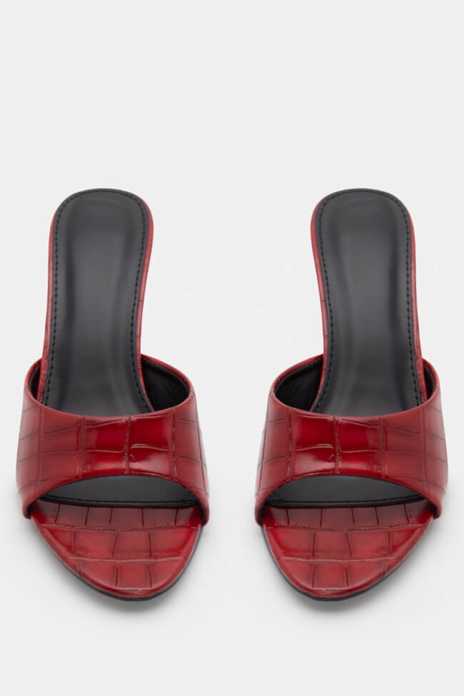 - Mules-uri deschise cu curelușe răsucite: Au ceva elegant și jucăuș totodată. Curelușa răsucită atrage privirea și adaugă mișcare. În special dacă o combini cu un look total black, face toată diferența.
