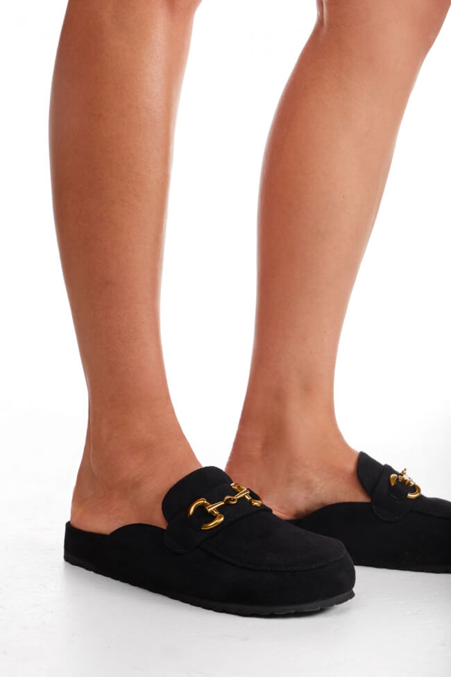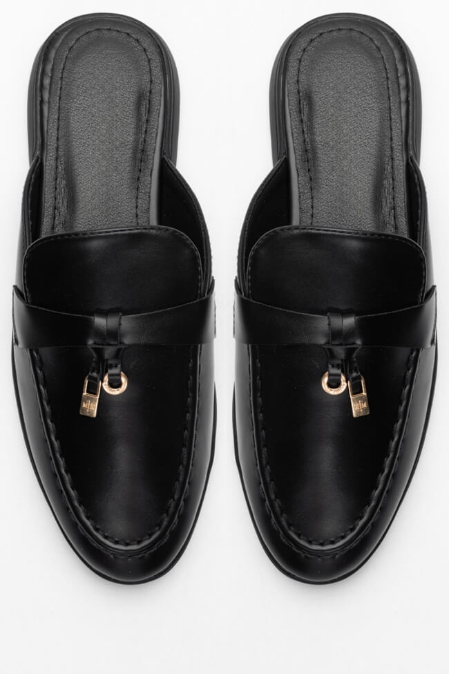 - Mules plate → Ideale pentru confort pe tot parcursul zilei. Poartă-le cu blugi, pantaloni scurți sau pantaloni ușori.