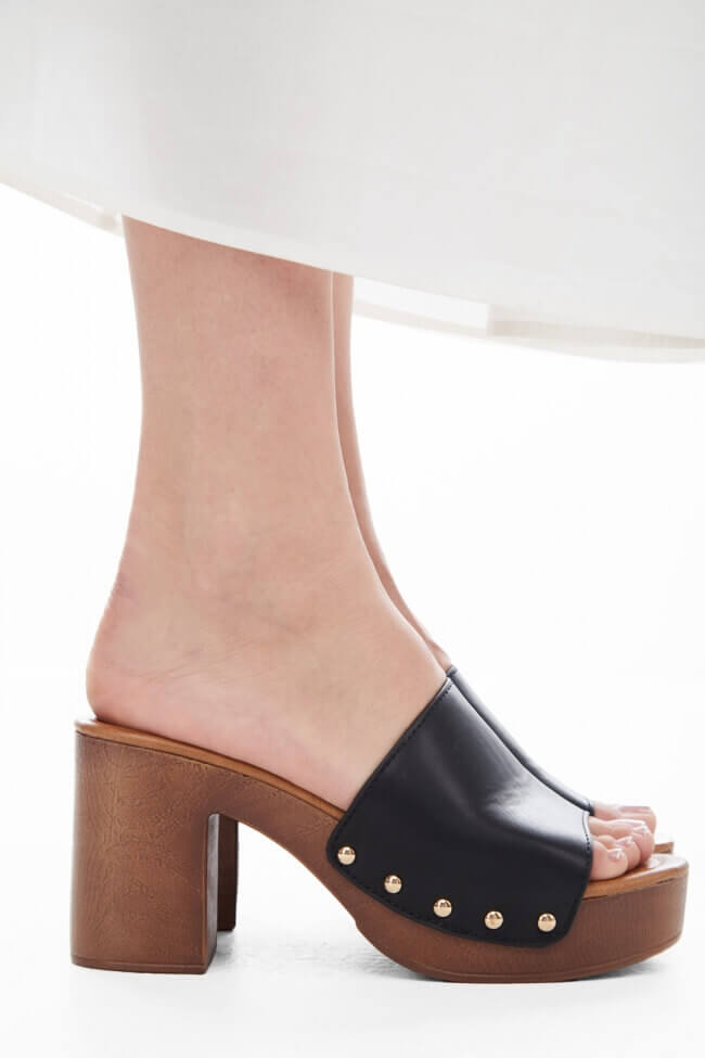 - Mules cu toc înalt → Pentru apariții elegante & stilate. Se potrivesc perfect cu rochii midi & piese tailorate.