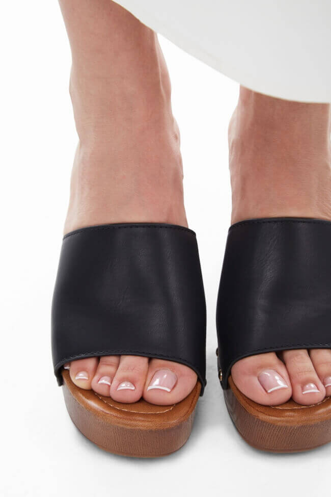 - Mules plate → Ideale pentru confort pe tot parcursul zilei. Poartă-le cu blugi, pantaloni scurți sau pantaloni ușori.