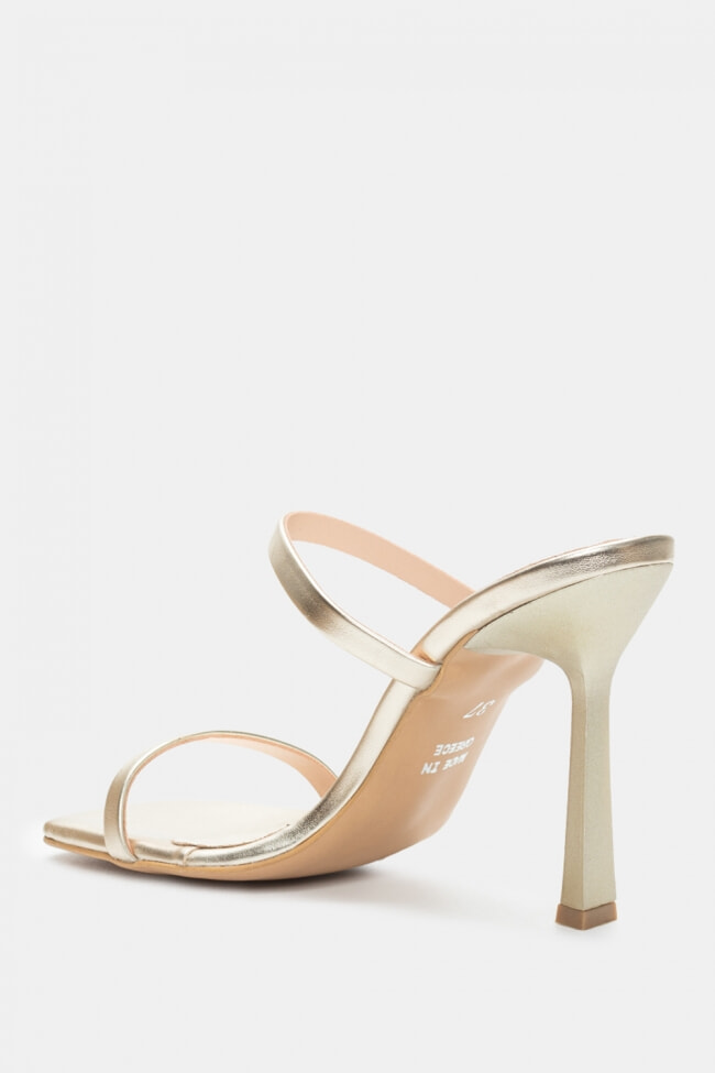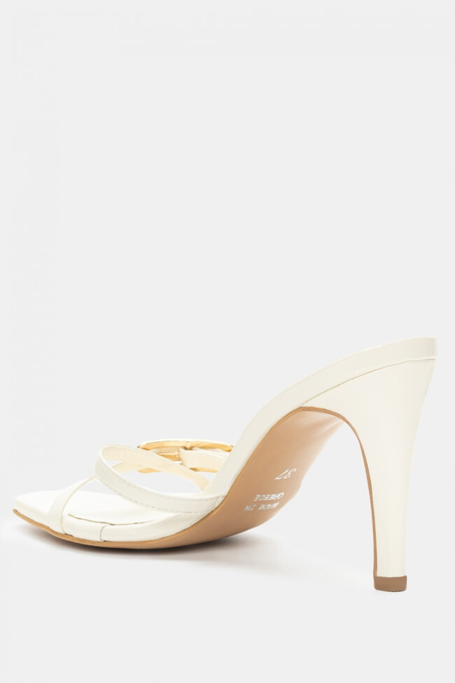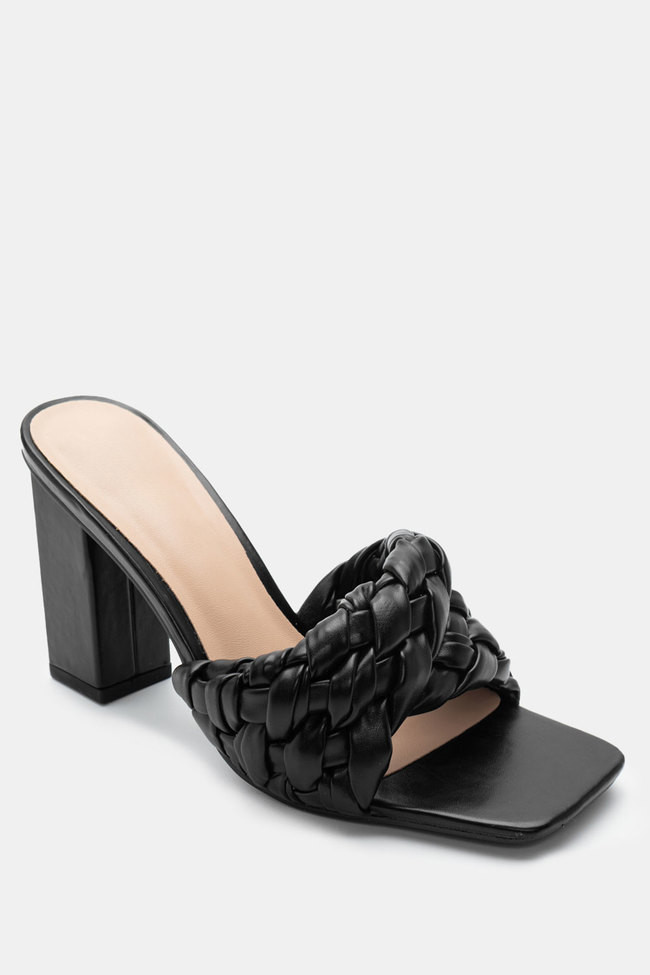 - Alege mules înalte satin sau din piele cu detalii strappy pentru un rezultat sleek & feminin.
