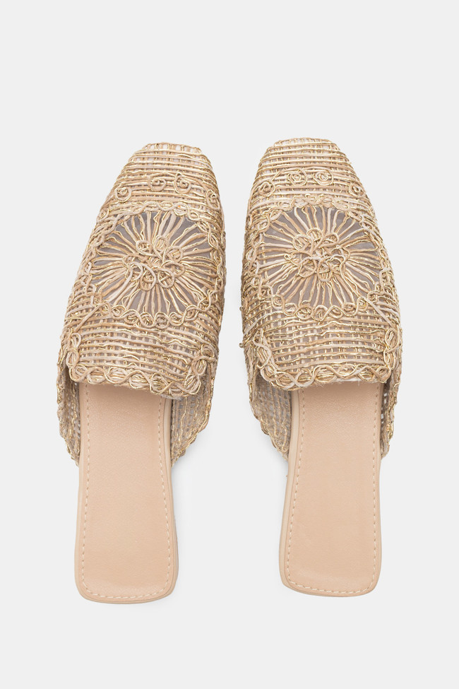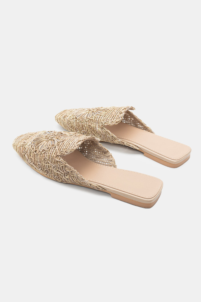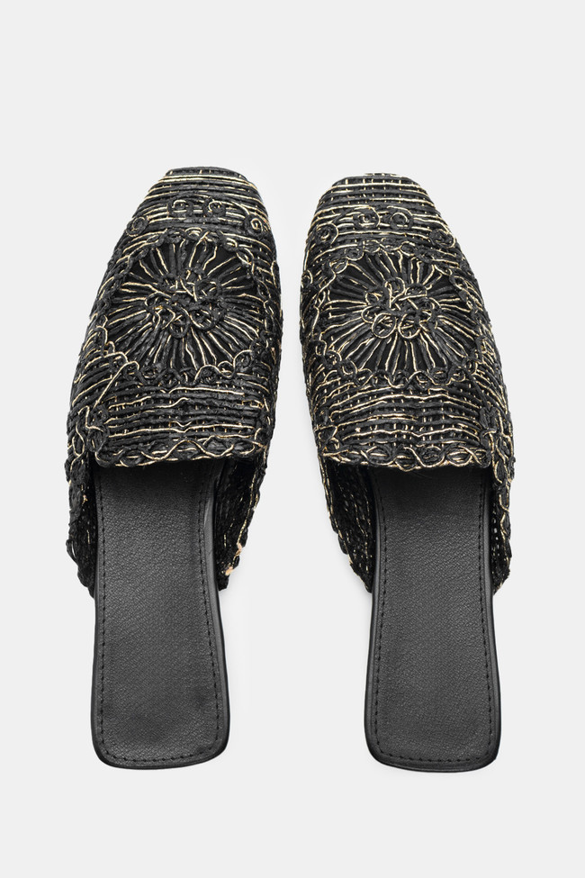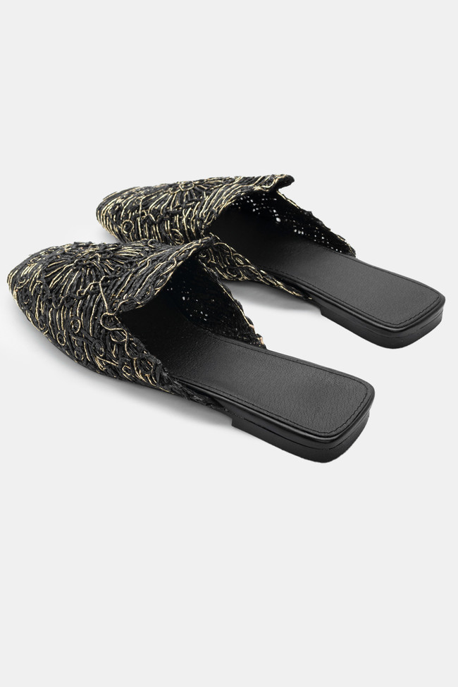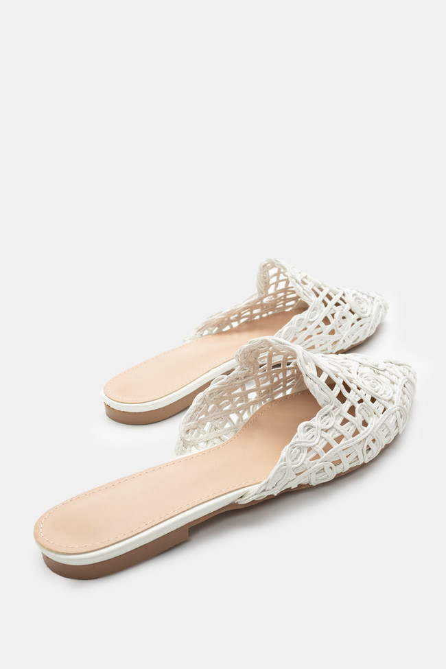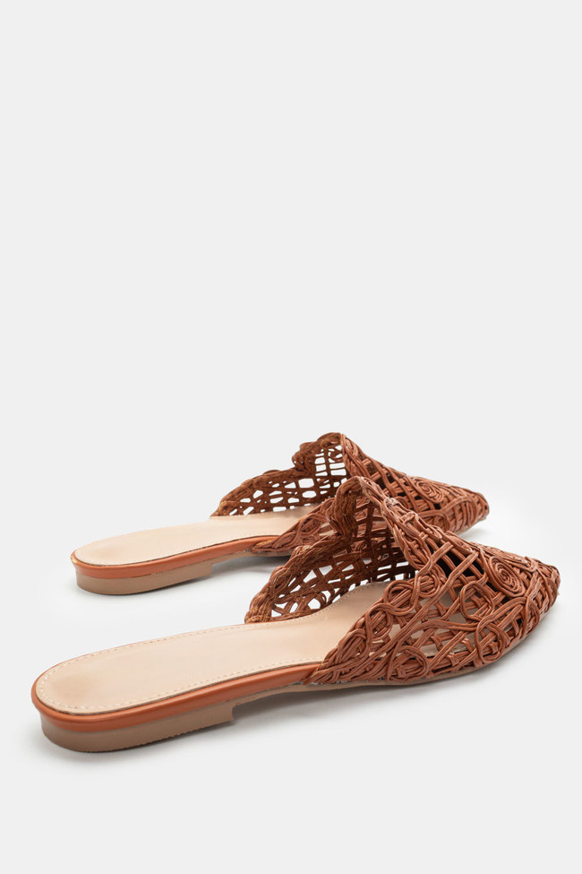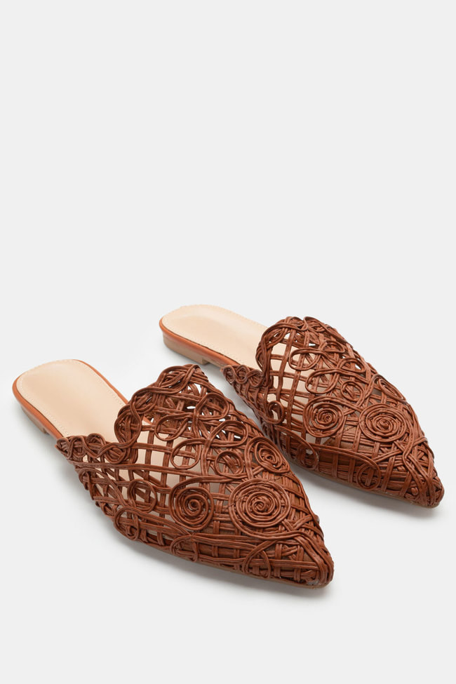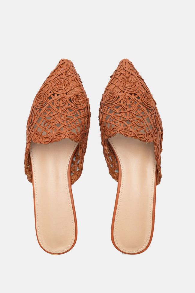 - Optează pentru mules deschise din raffia, in sau piele: Oferă un vibe boho sau minimal și se potrivesc perfect cu outfit-uri de vară.