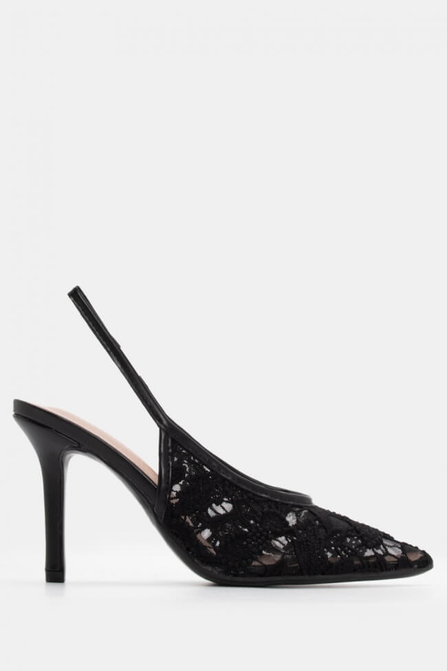 Pantofi cu Toc cu Plasă & Accesorii din Dantelă