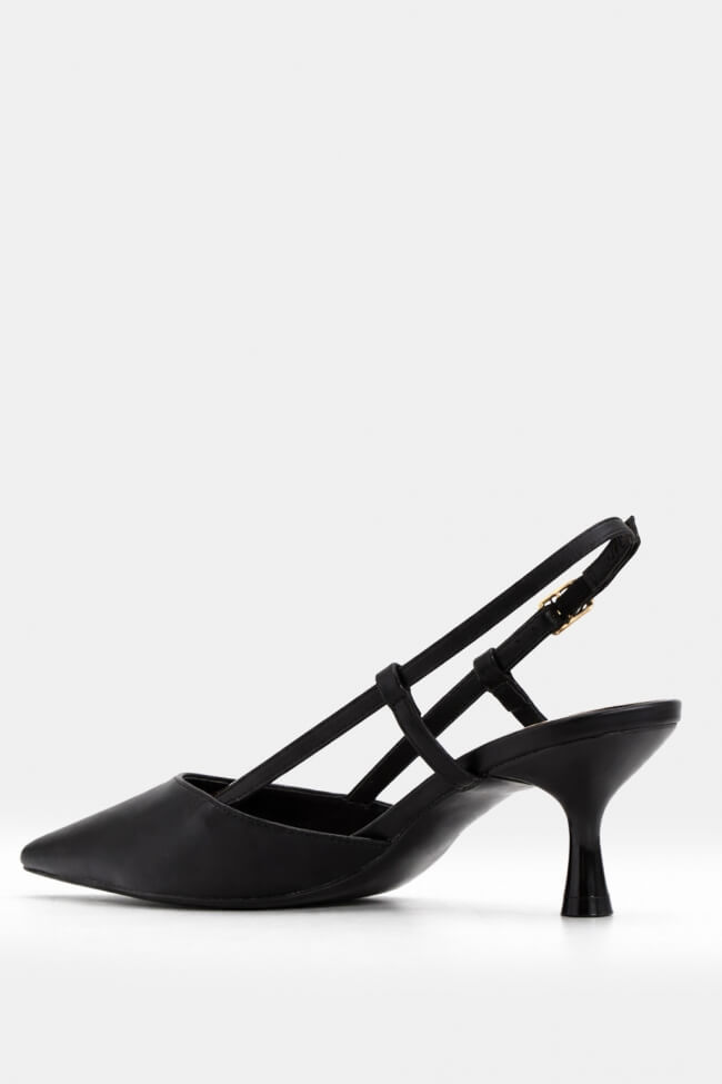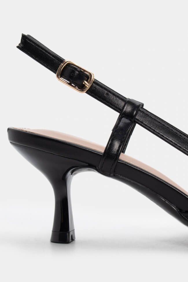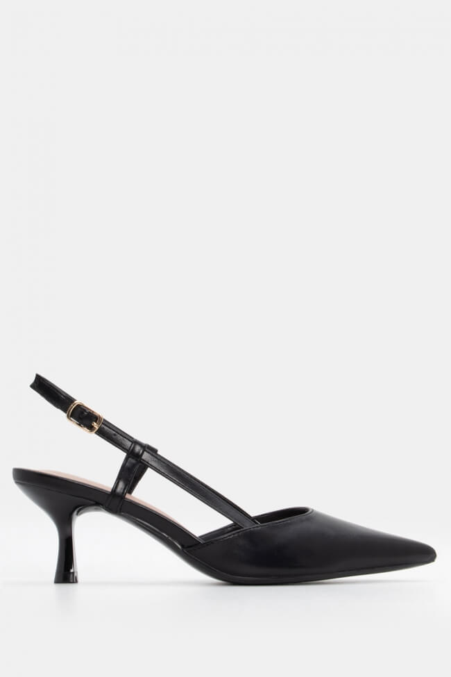 Mules cu vârf ascuțit cu cataramă decorativă și fronseuri