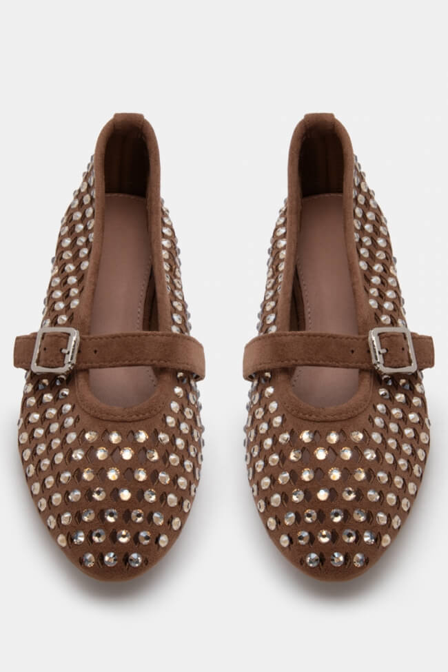 Pantofi cu vârf ascuțit cu pietre decorative