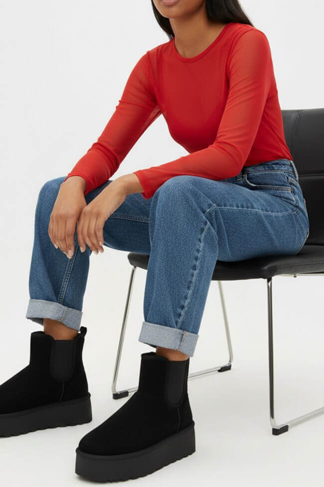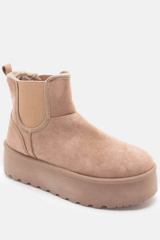 Botine cu Talpă Dublă, Căptușeală Interioară din Blană & Elastic