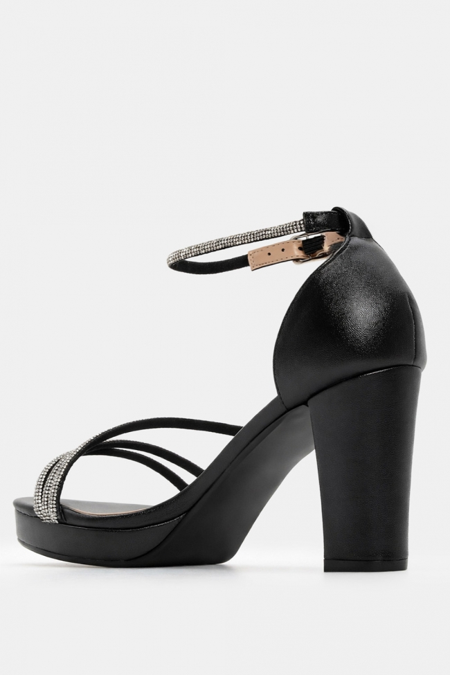 Το λεπτό τακούνι προσδίδει θηλυκότητα και sexy attitude στο σύνολό σου, ενώ τα στρας προσθέτουν μια λαμπερή πινελιά που μαγνητίζει τα βλέμματα.