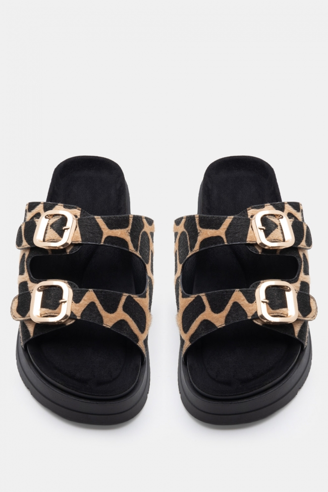 - Flatforms cu imprimeu animal pentru un stil de vacanță și evadări insulare.