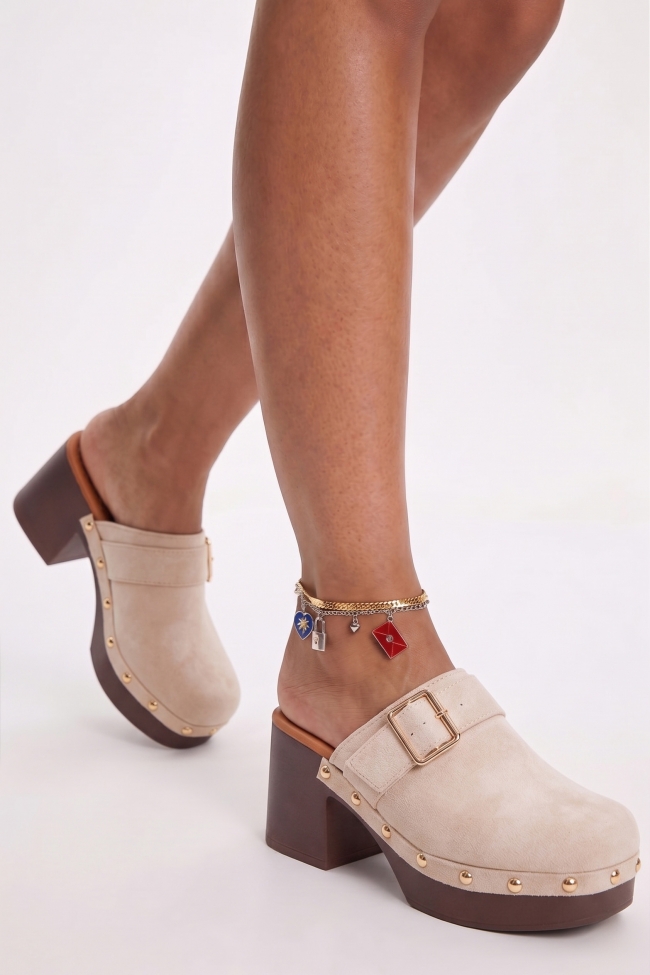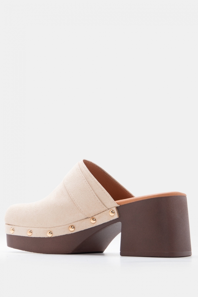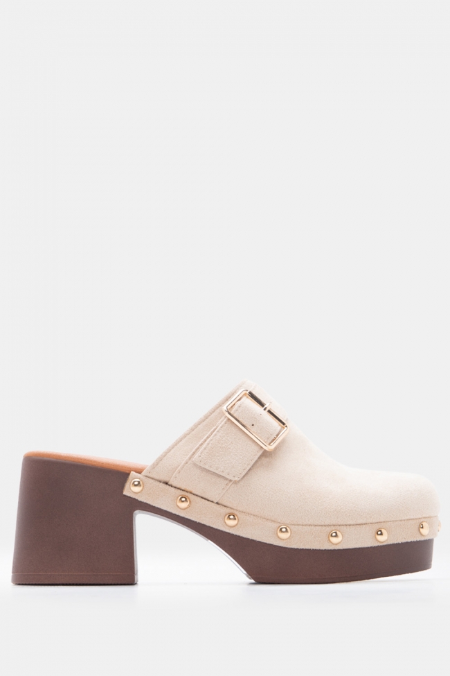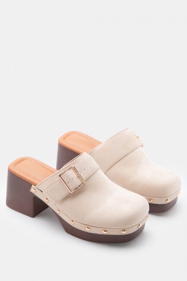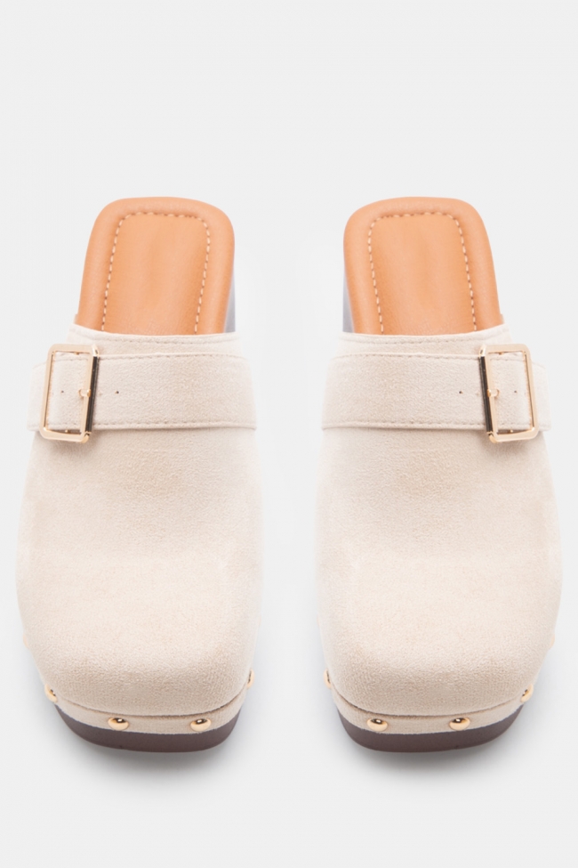 Sandale din piele întoarsă cu platformă și toc gros cu aspect de lemn