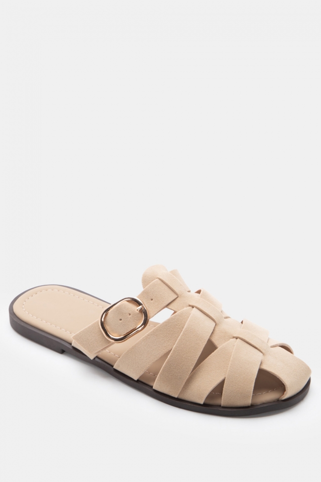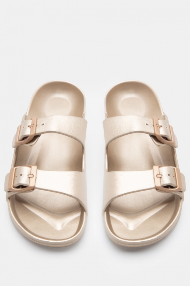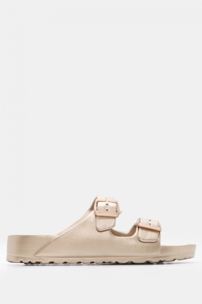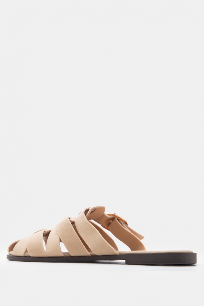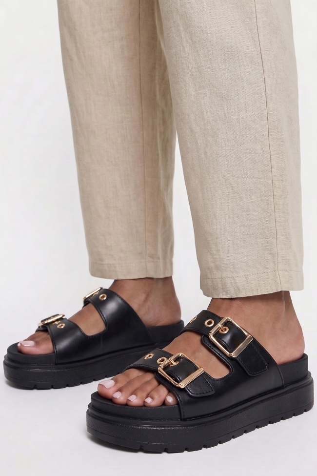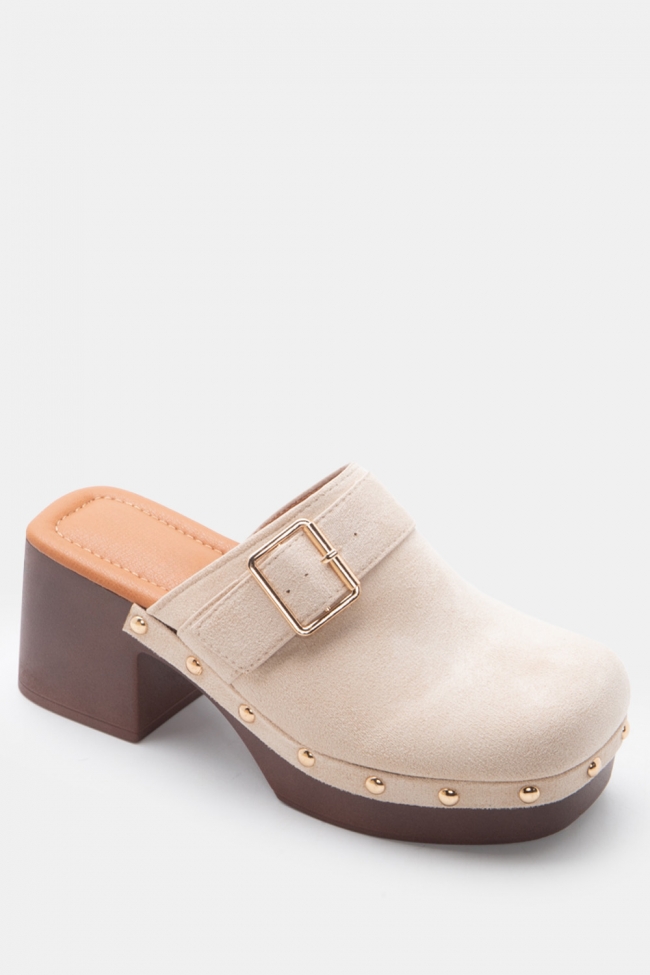 Sandale din piele întoarsă cu platformă și toc gros cu aspect de lemn
