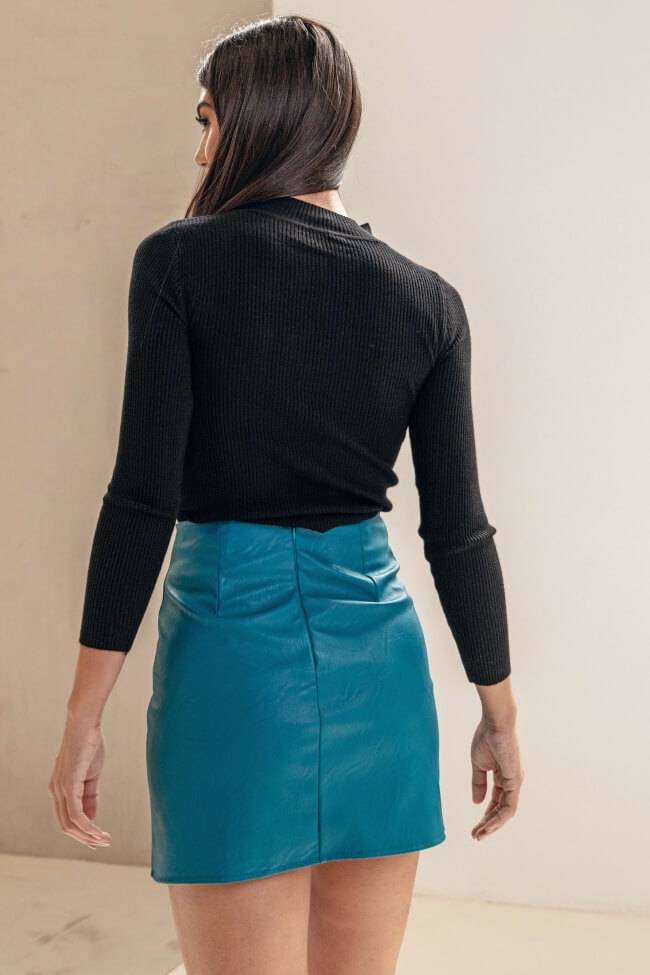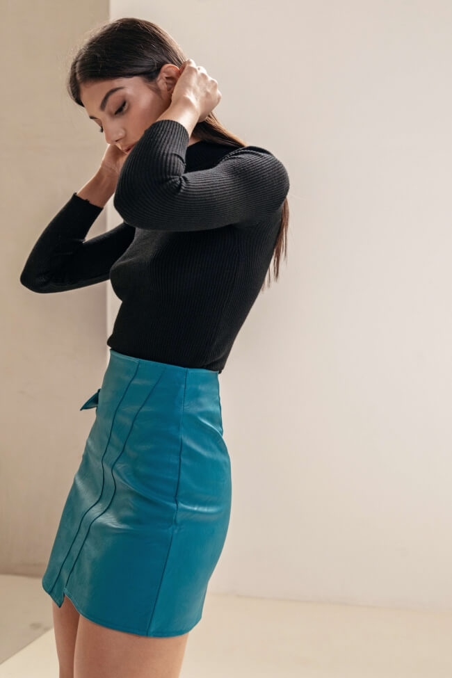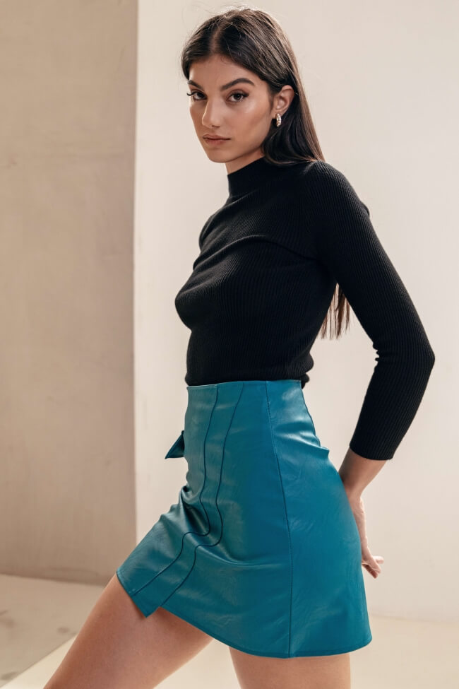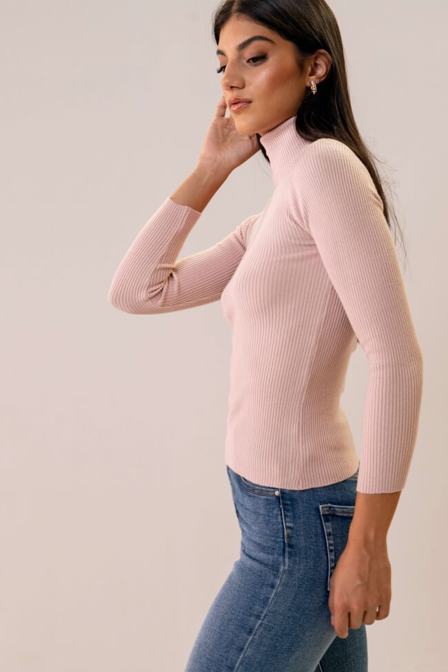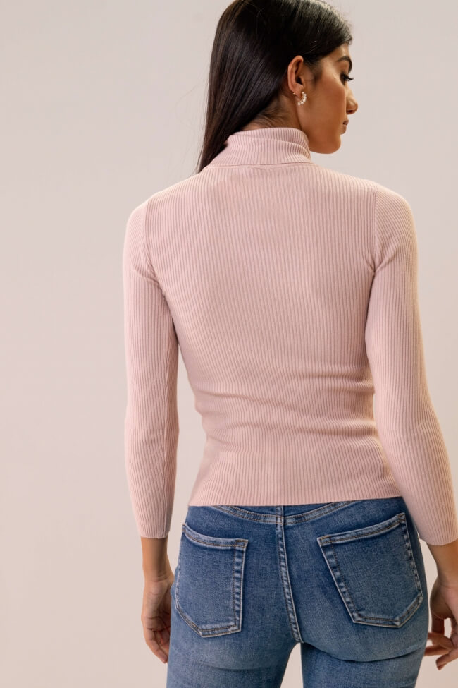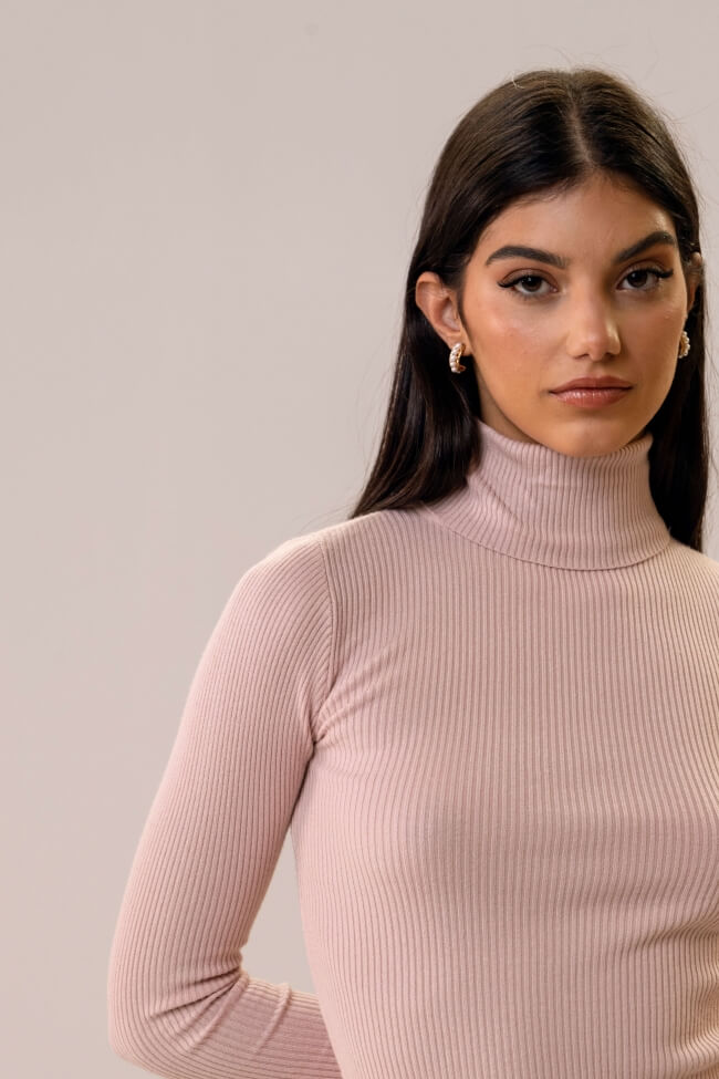 Bluză din material rib cu guler înalt