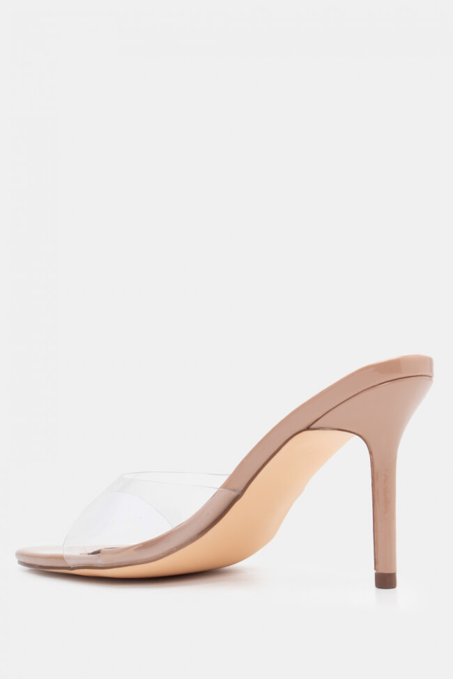 - Rochie slip & sandale cu toc gros în culoare pastel sau cu transparență pentru o ieșire de seară.