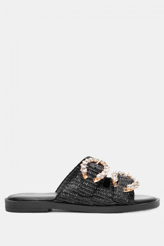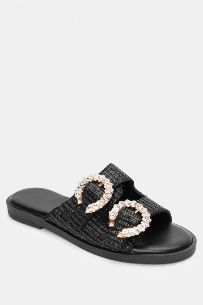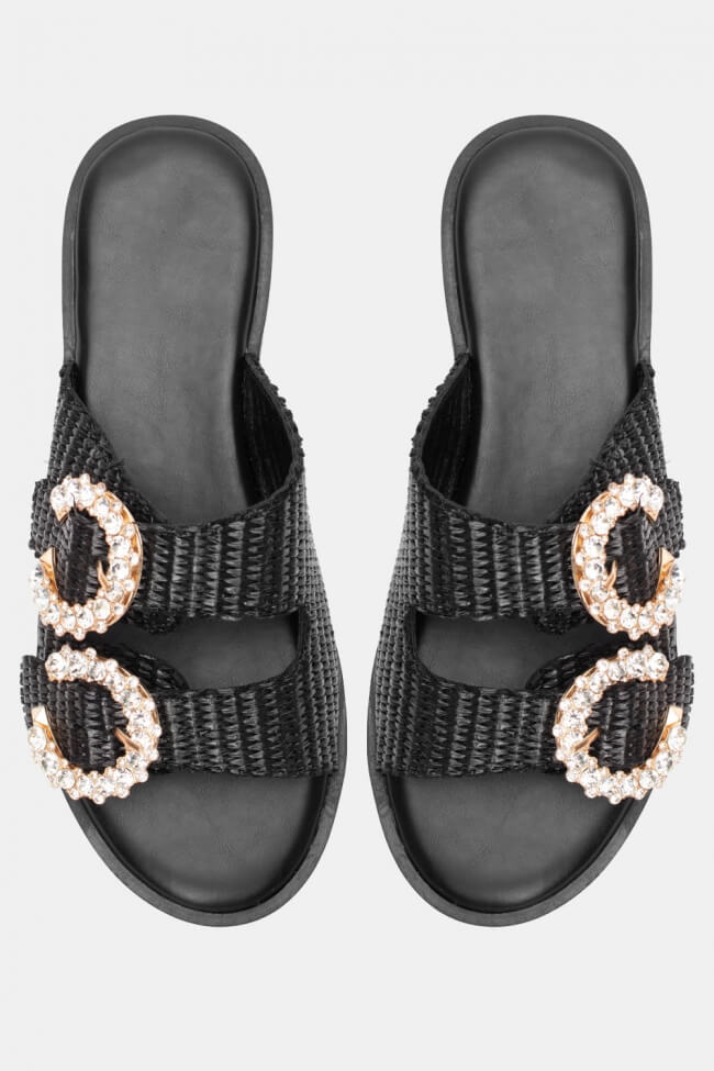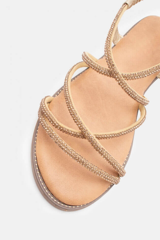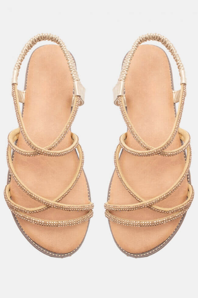 #2. Sandale cu strasuri: Pentru un plus de glam și feminitate, ideale cu fuste mini, pantaloni scurți sau rochii maxi, adăugând strălucire fiecărui pas și făcând chiar și cel mai simplu outfit să pară impresionant și elegant.