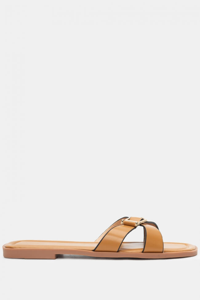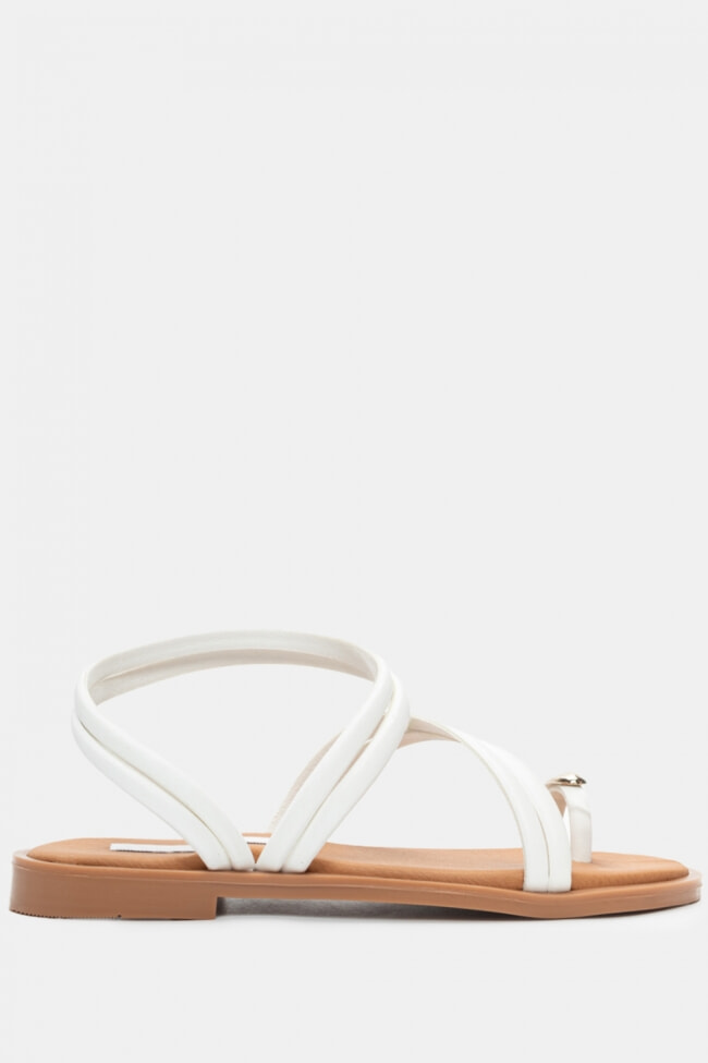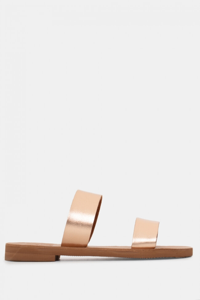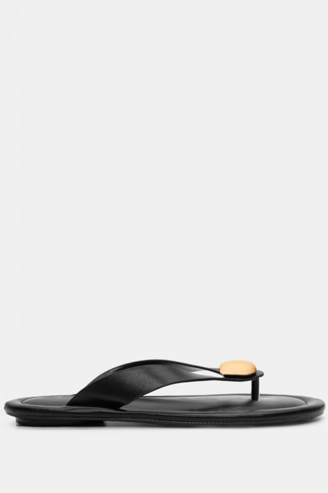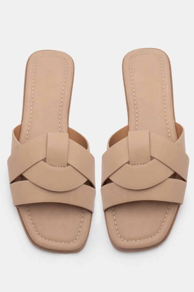 #1. Sandale plate cu linie minimală: Perfecte pentru lookuri zilnice cu blugi, pantaloni scurți sau rochii lejere.