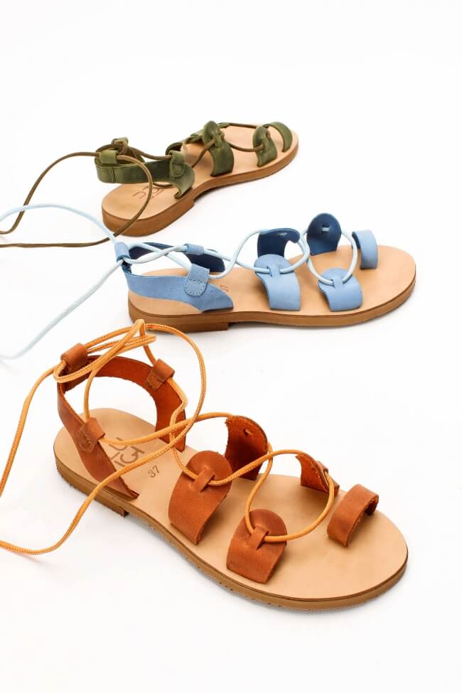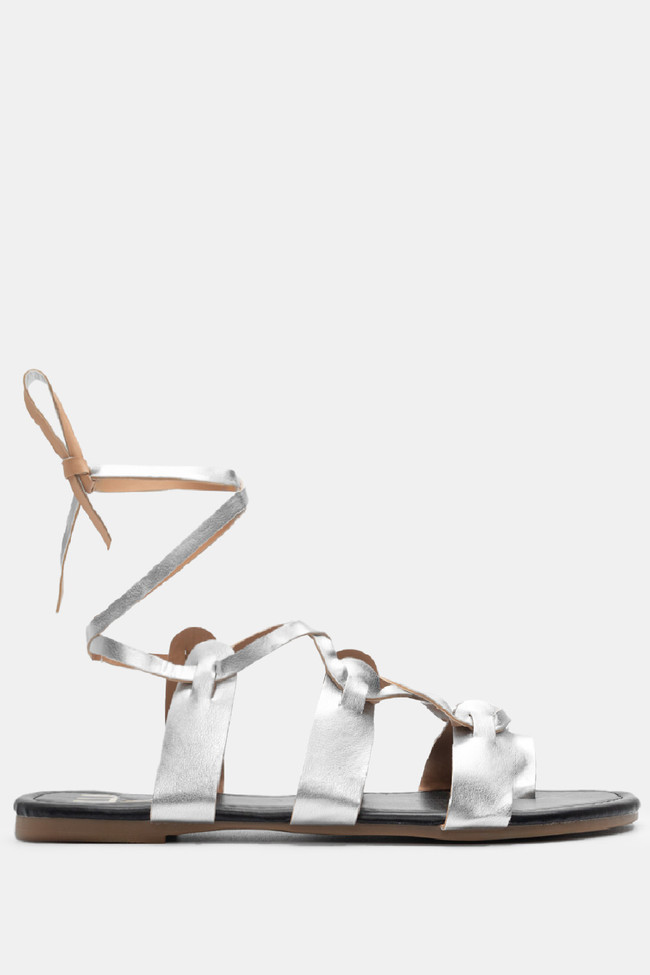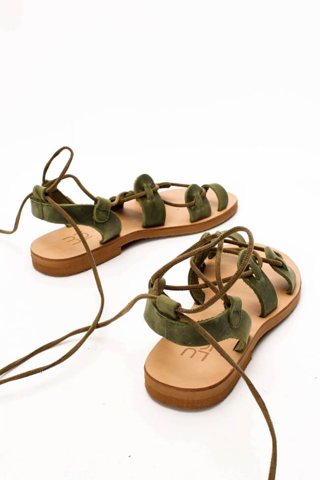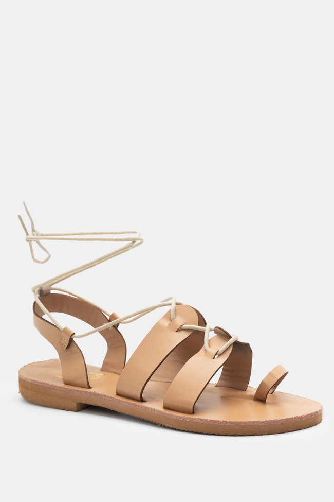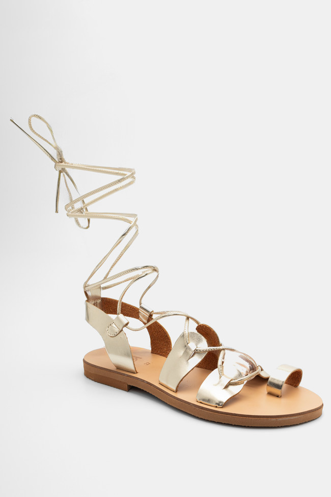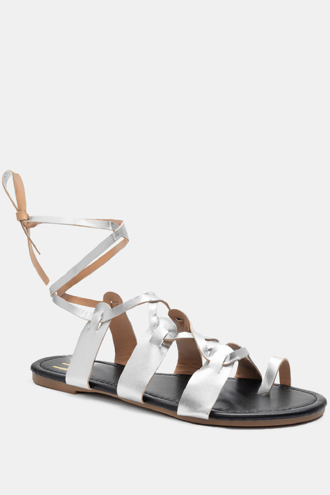 LUIGI DESIGN - Sandale Plate din Piele cu Șireturi