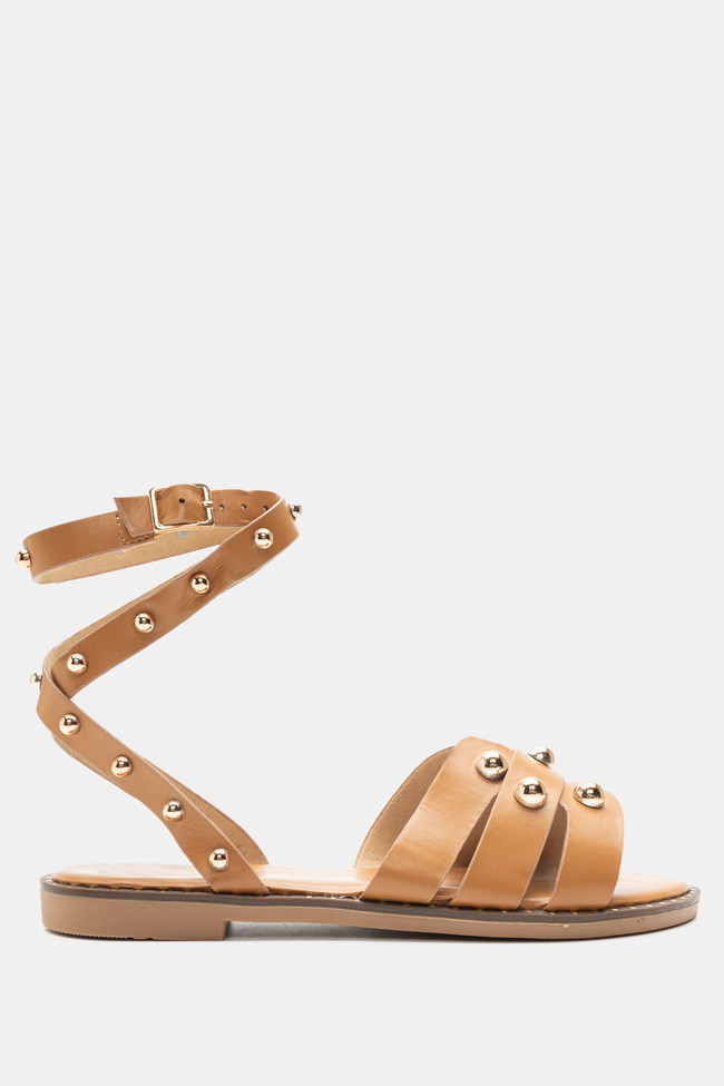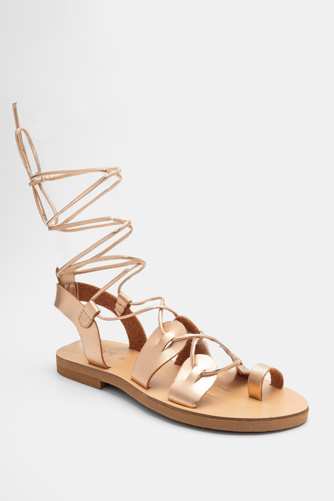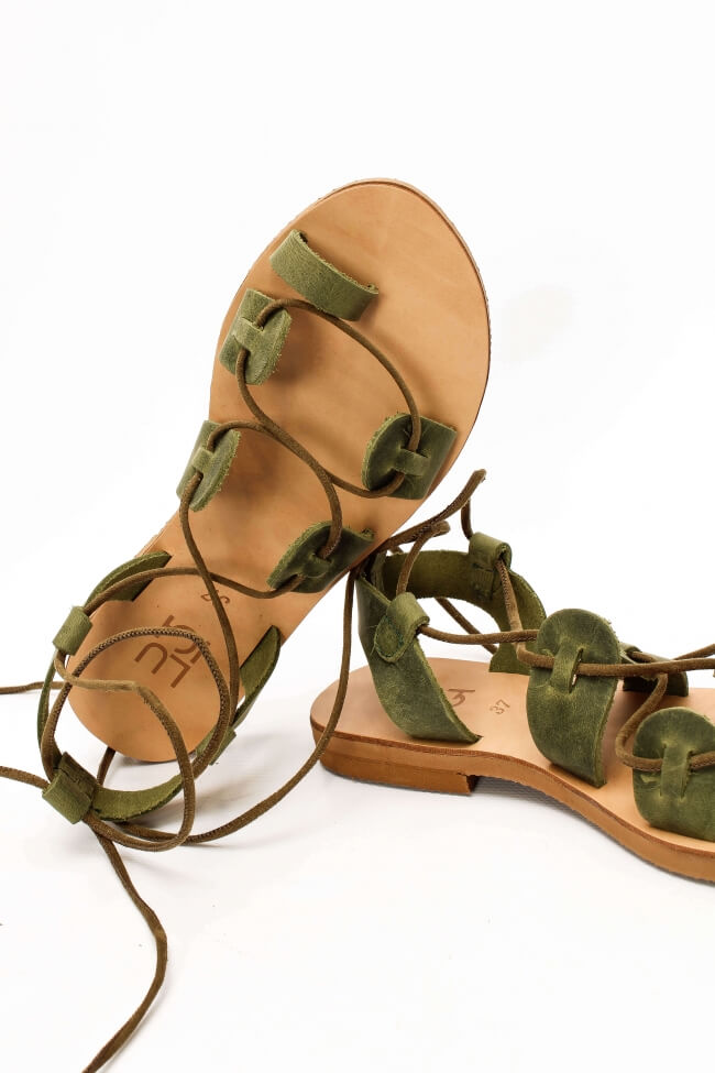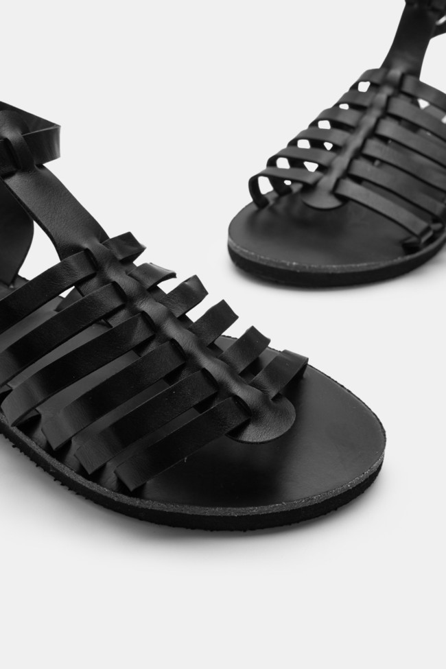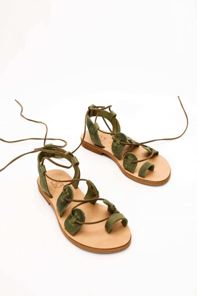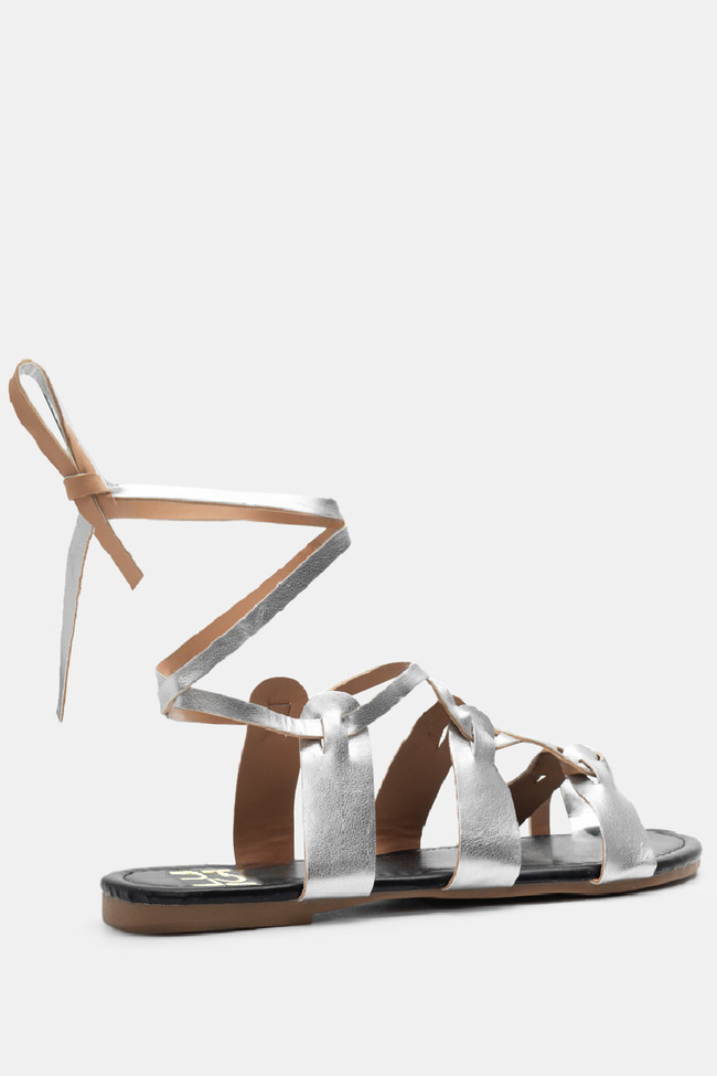 LUIGI DESIGN - Sandale Plate din Piele cu Șireturi