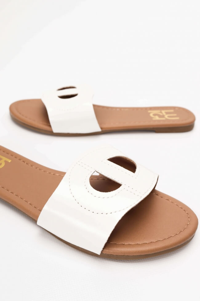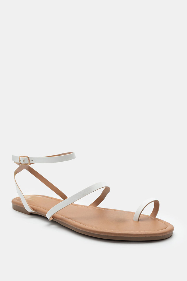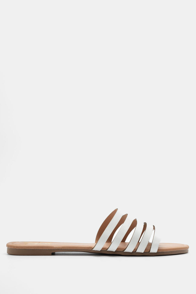 #1. Sandale plate cu linie minimală: Perfecte pentru lookuri zilnice cu blugi, pantaloni scurți sau rochii lejere.