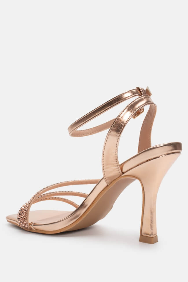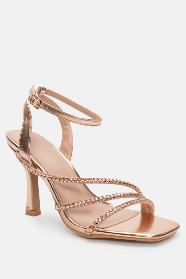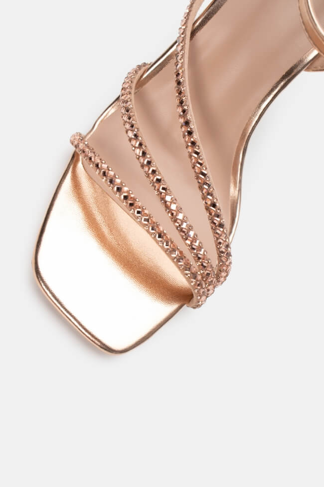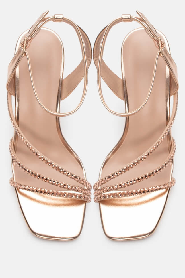 Sandale cu Curele Oblice din Strass
