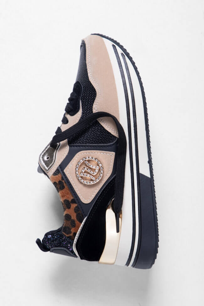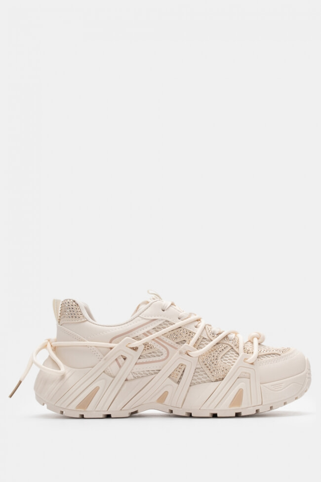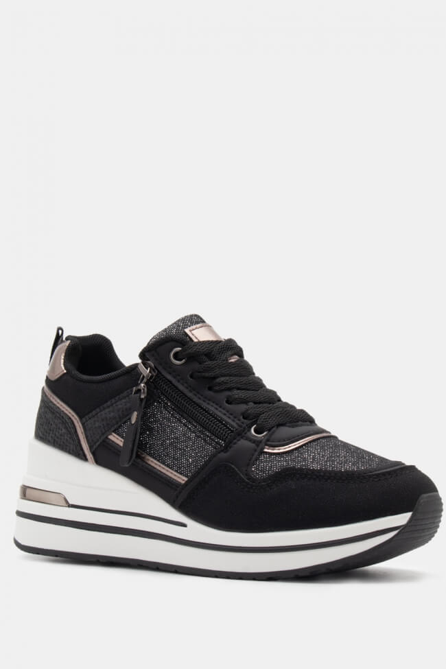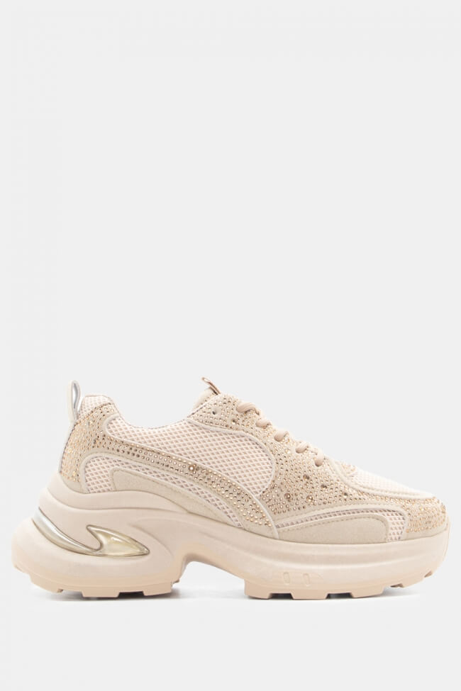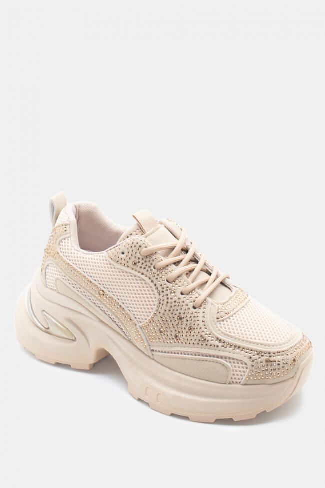 Sneakers cu talpă dublă cu strasuri și fermoar