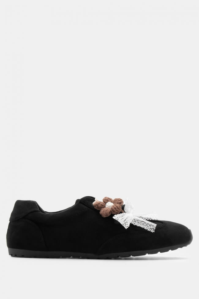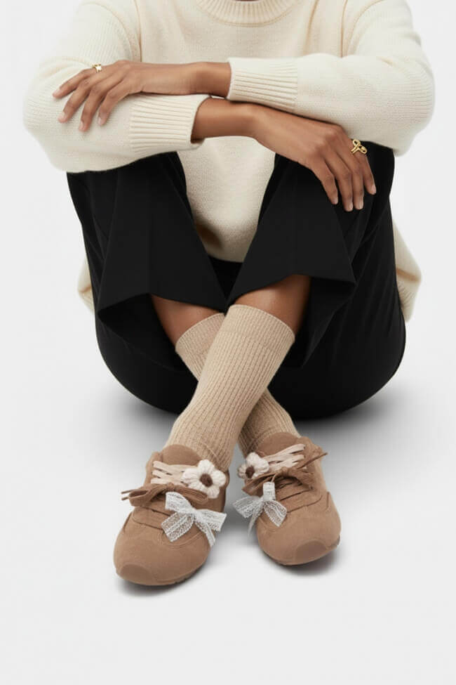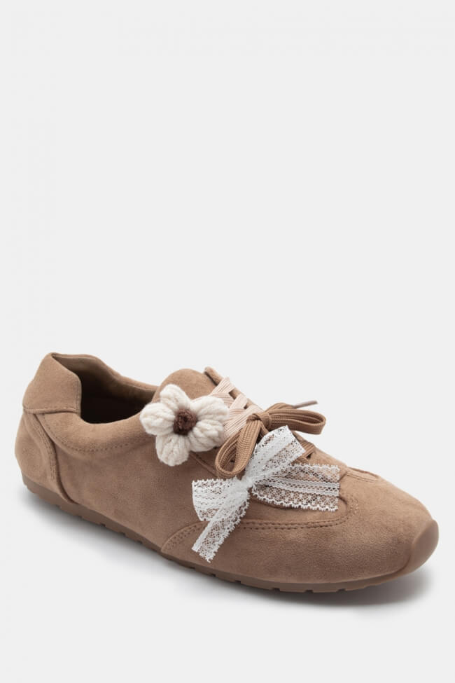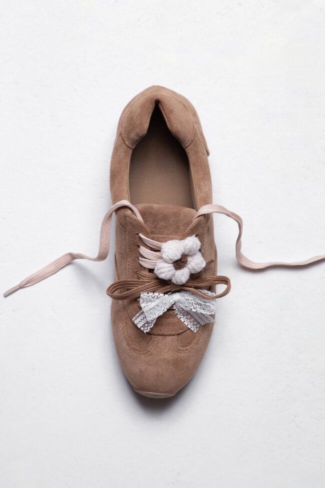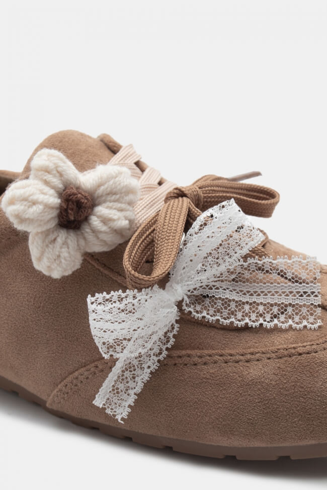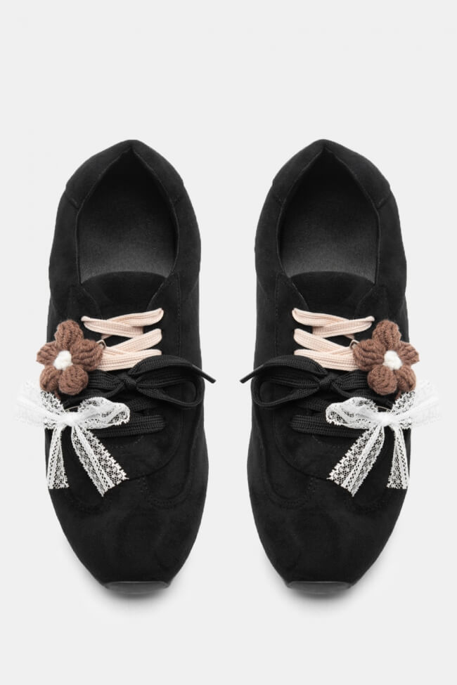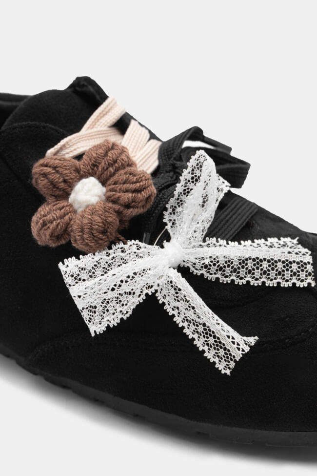 Sneakers cu Șireturi Duble & Floare Tricotată Decorativă