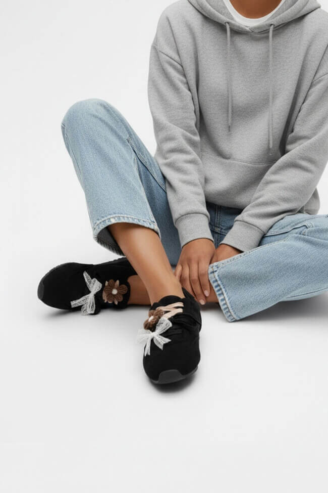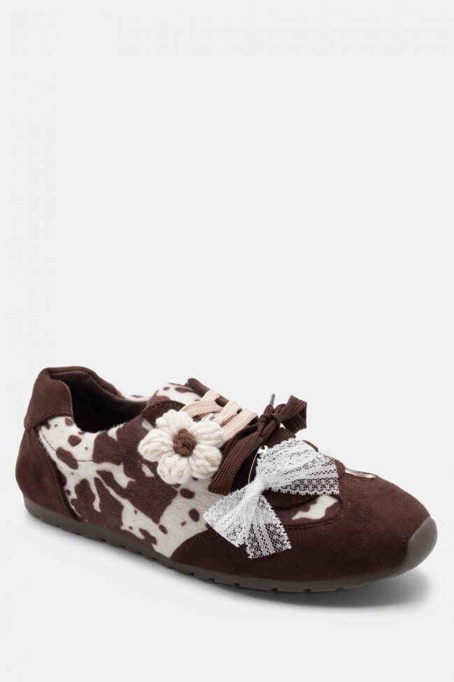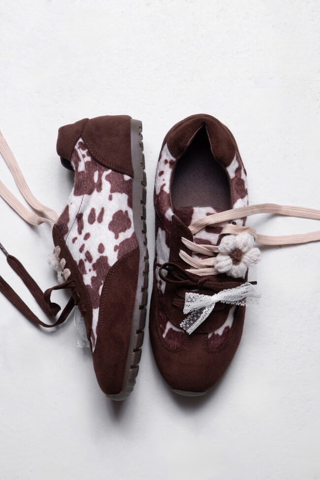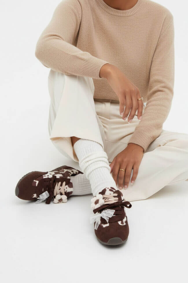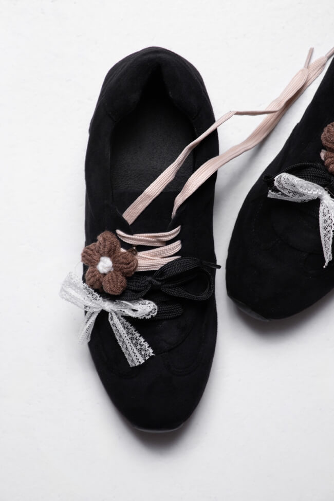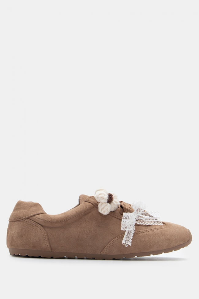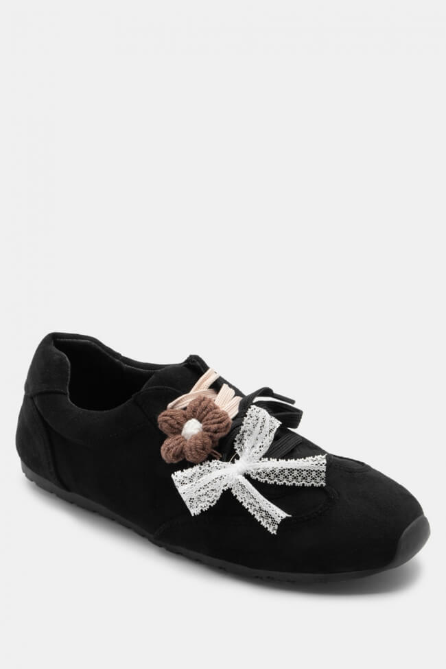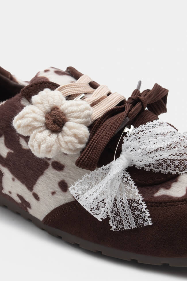 Sneakers cu Șireturi Duble & Floare Tricotată Decorativă