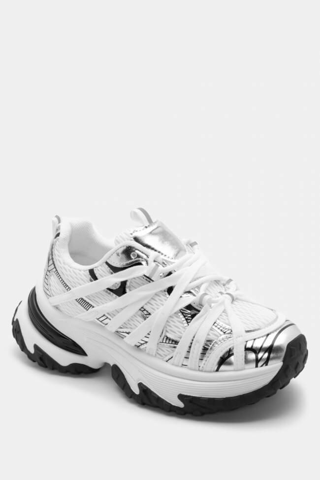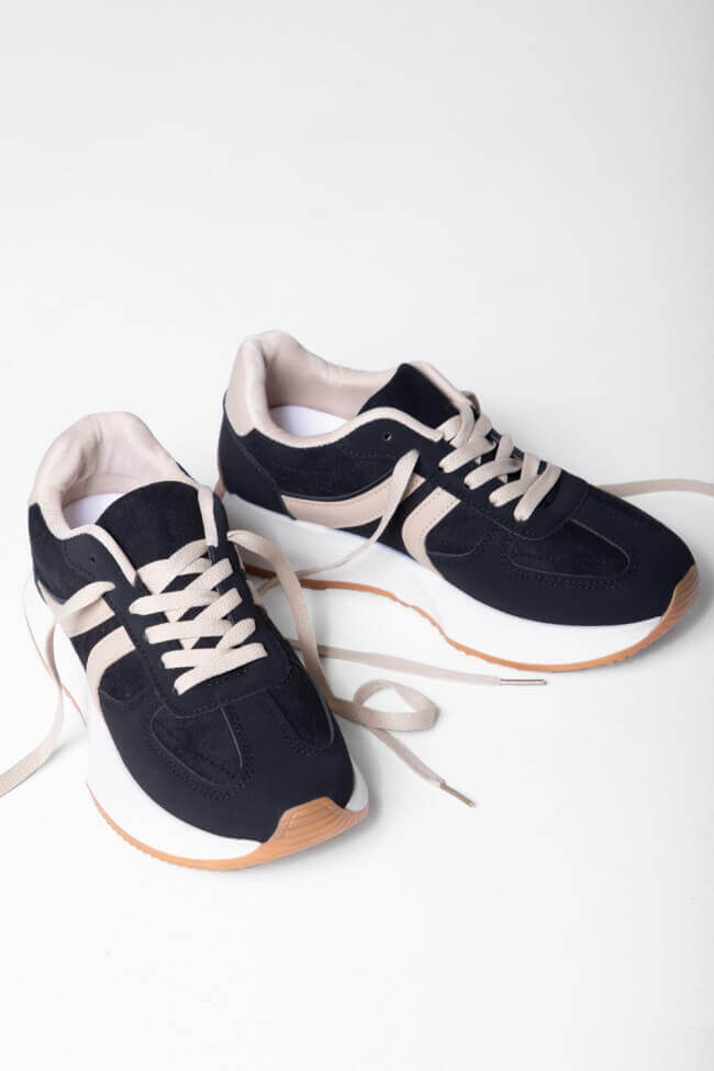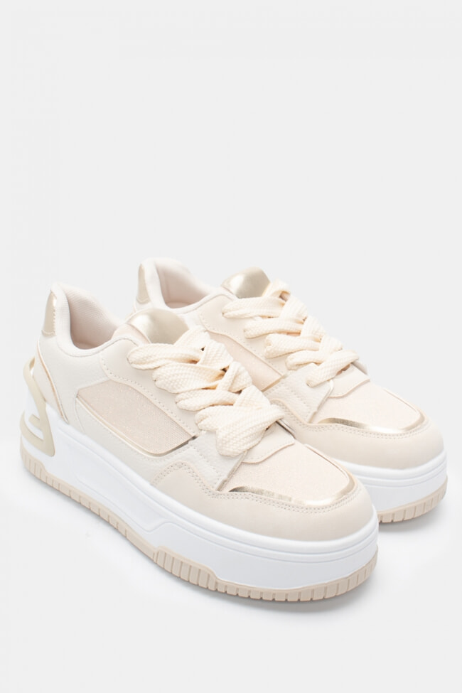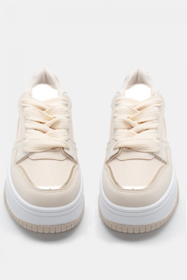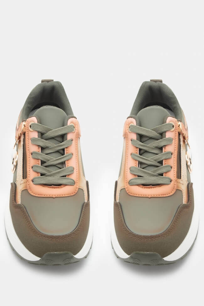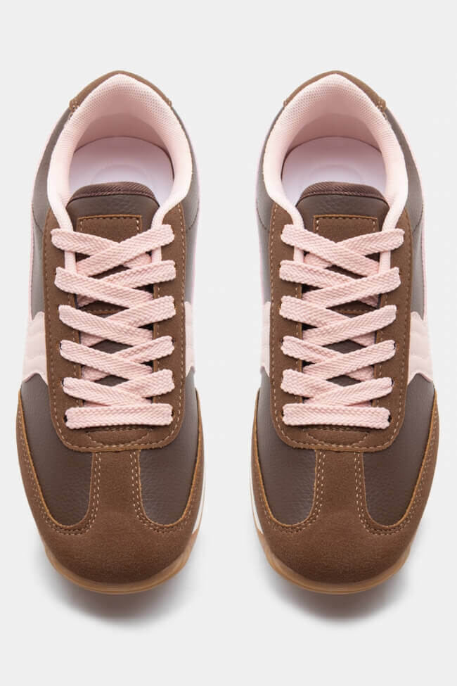 Sneakers în Combinație de Culori cu Șireturi Decorative