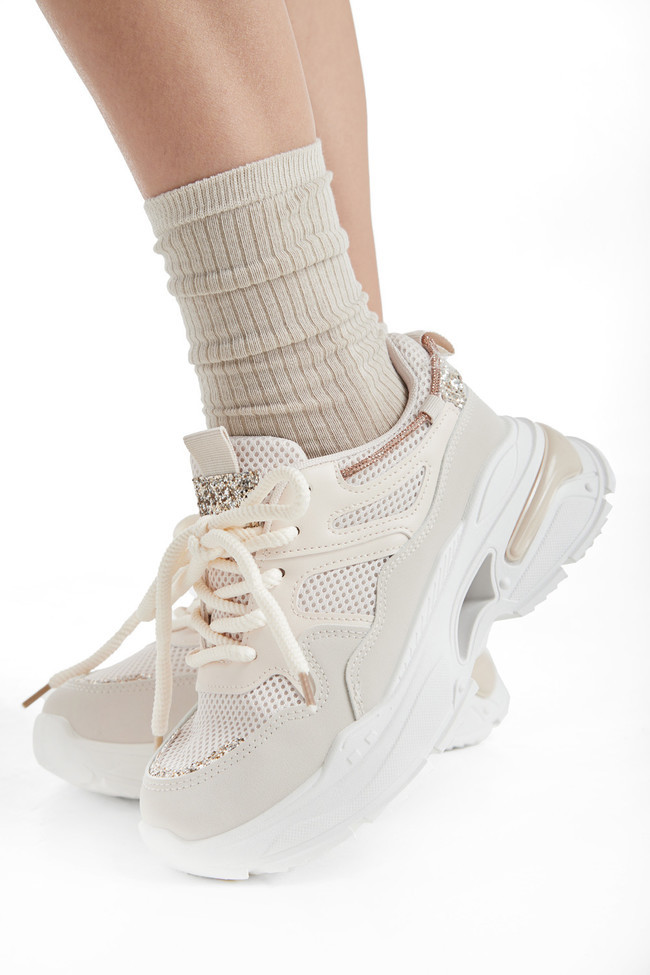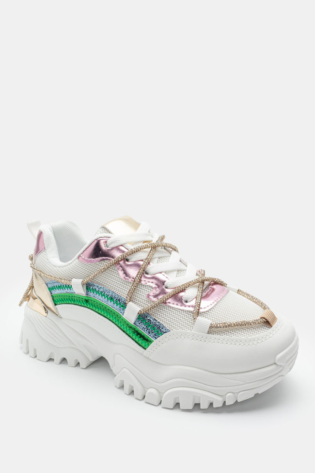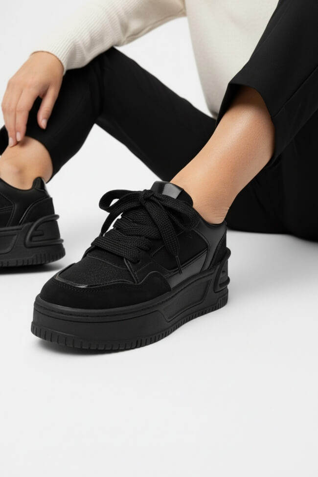 Sneakers cu Talpă Supradimensionată din Combinat de Materiale