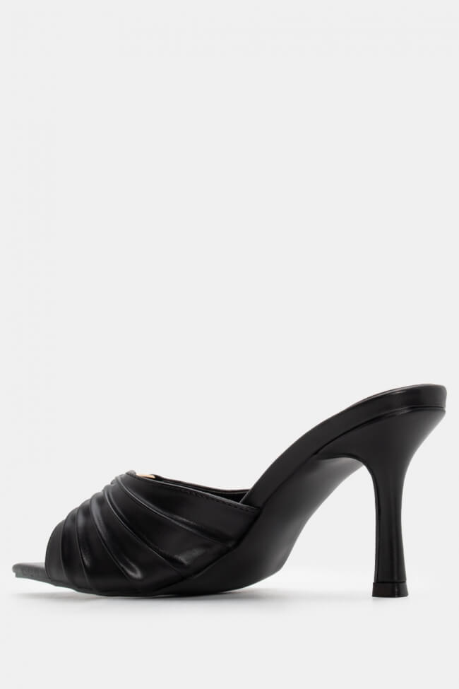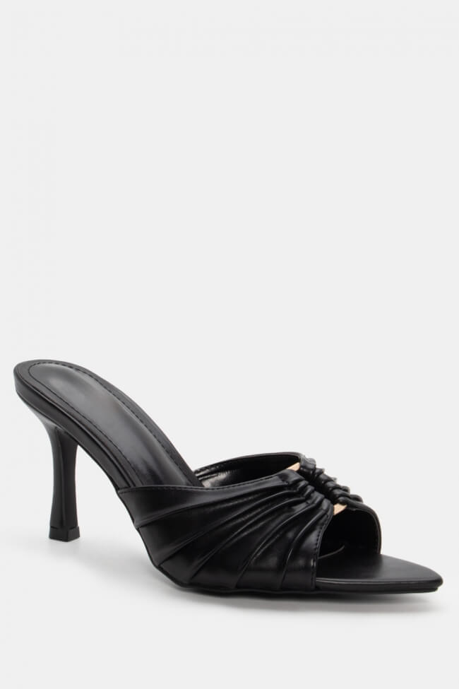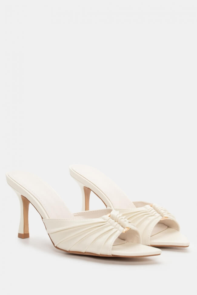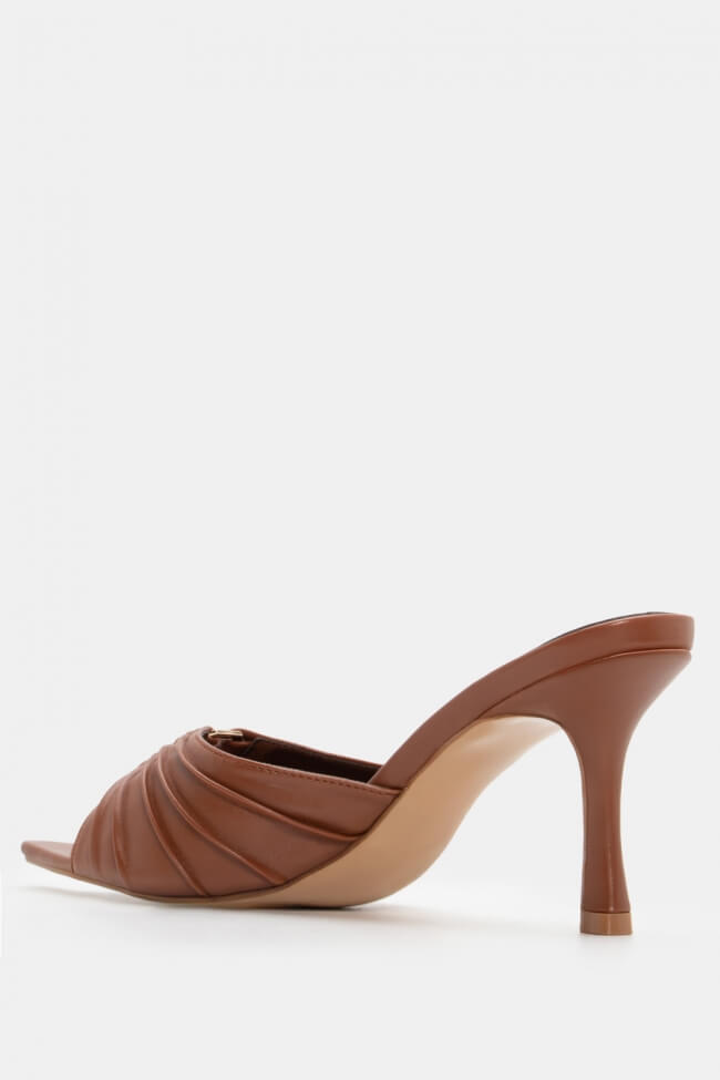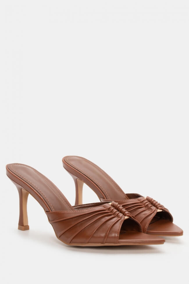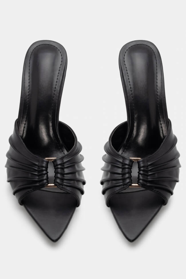 Mules cu vârf ascuțit cu cataramă decorativă și fronseuri