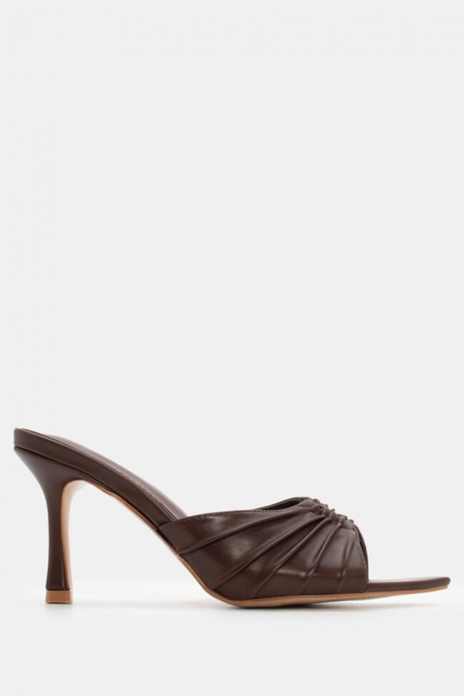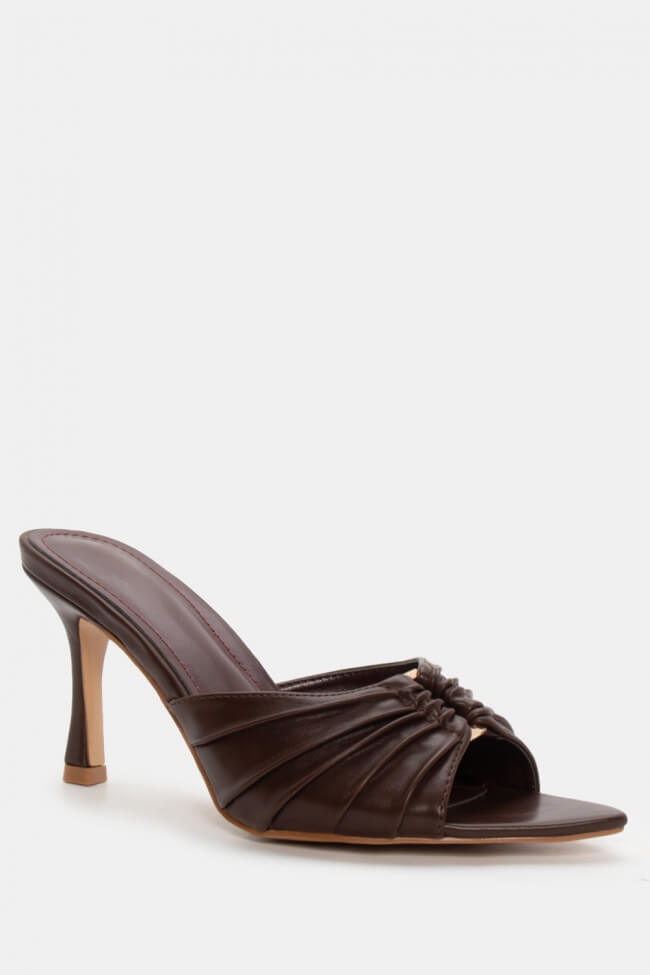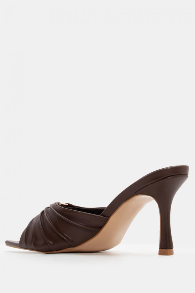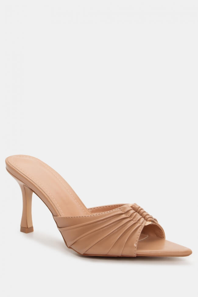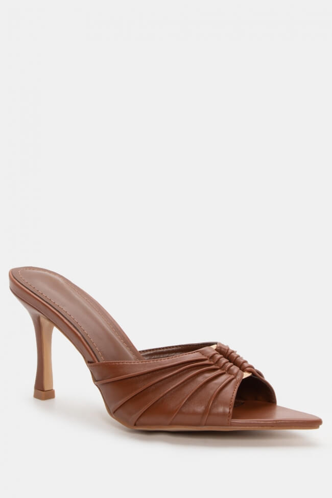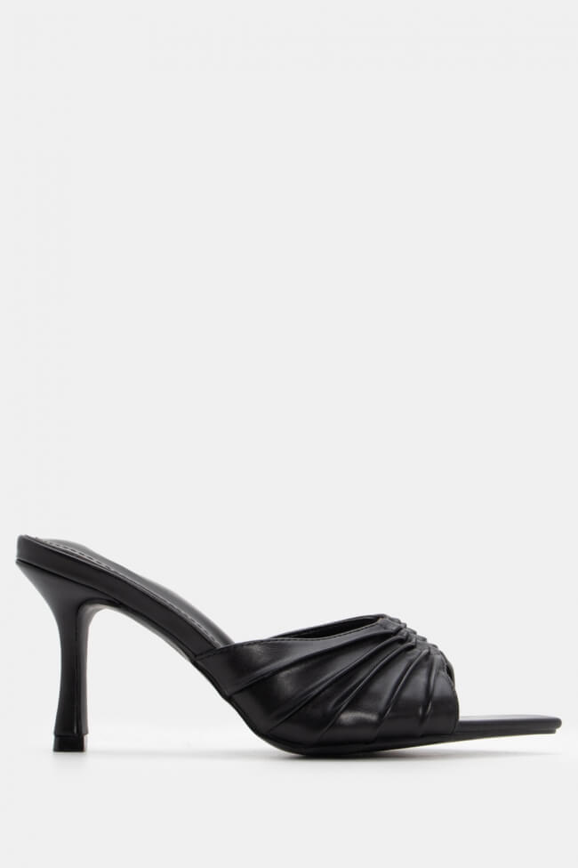 Mules cu vârf ascuțit cu cataramă decorativă și fronseuri