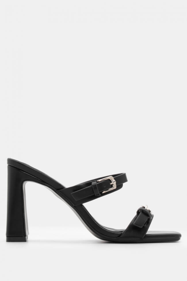 Mules con Fascia Trasparente e Dettaglio Metallico
