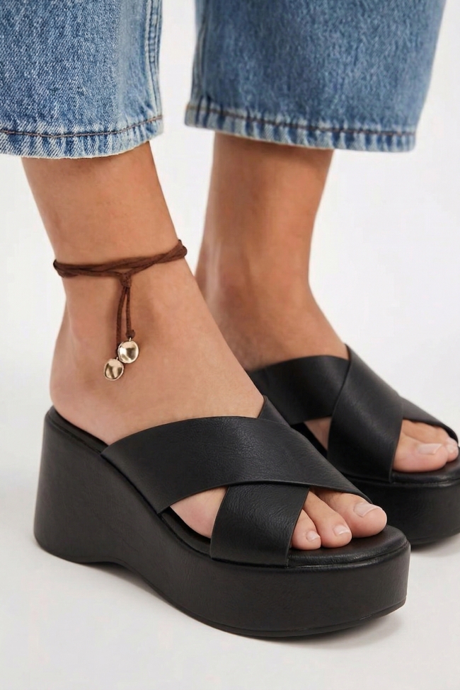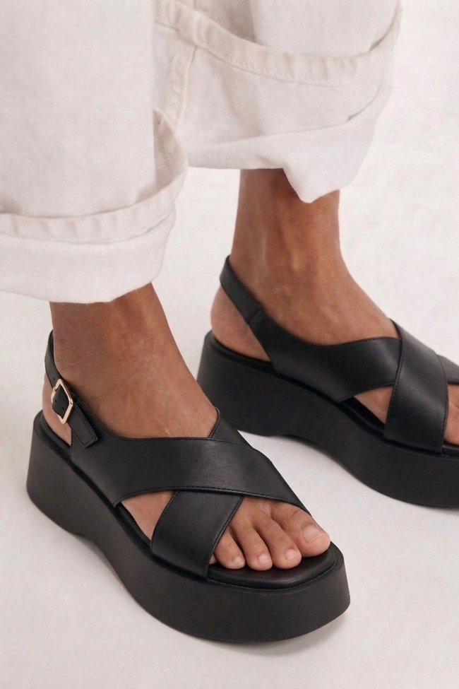 Sandale Flatform cu Barete Înncrucișate & Bareta Spate