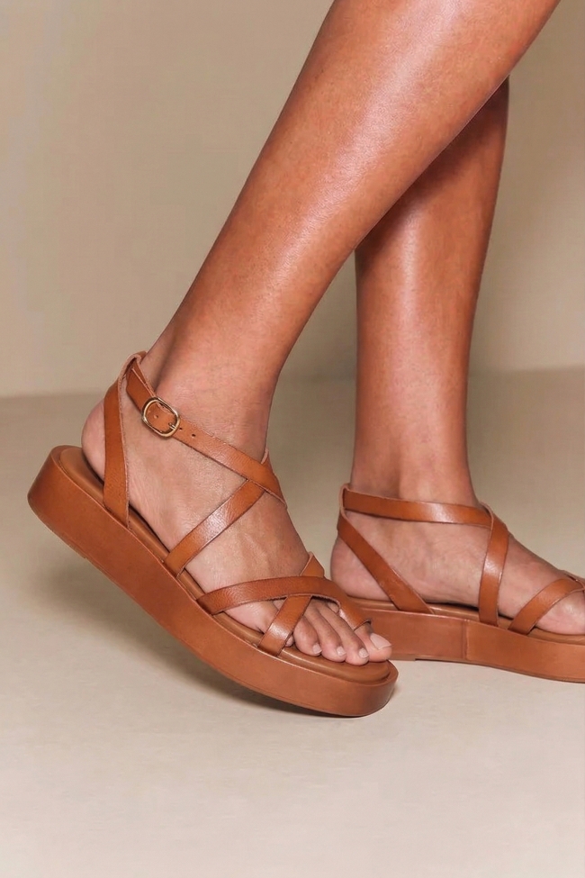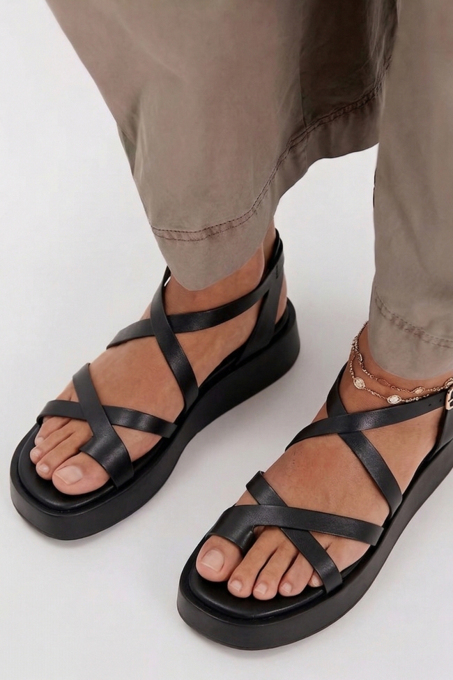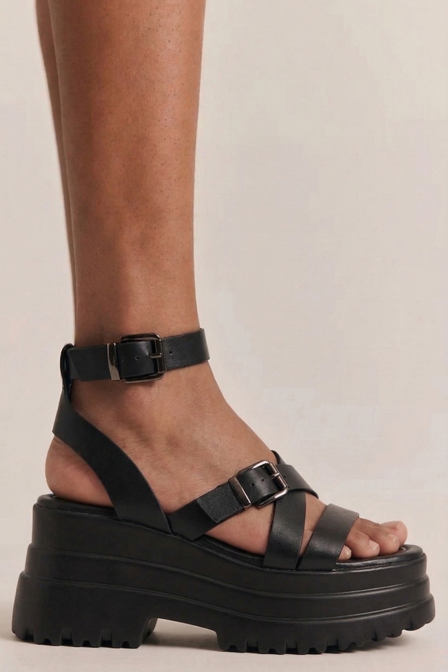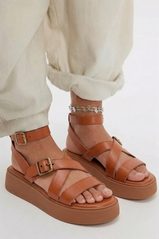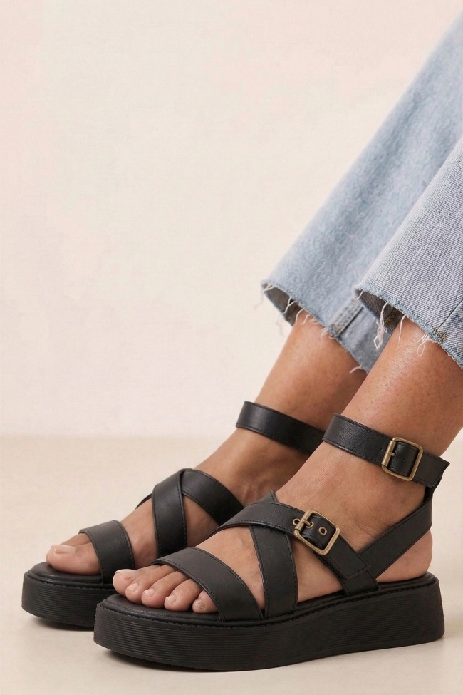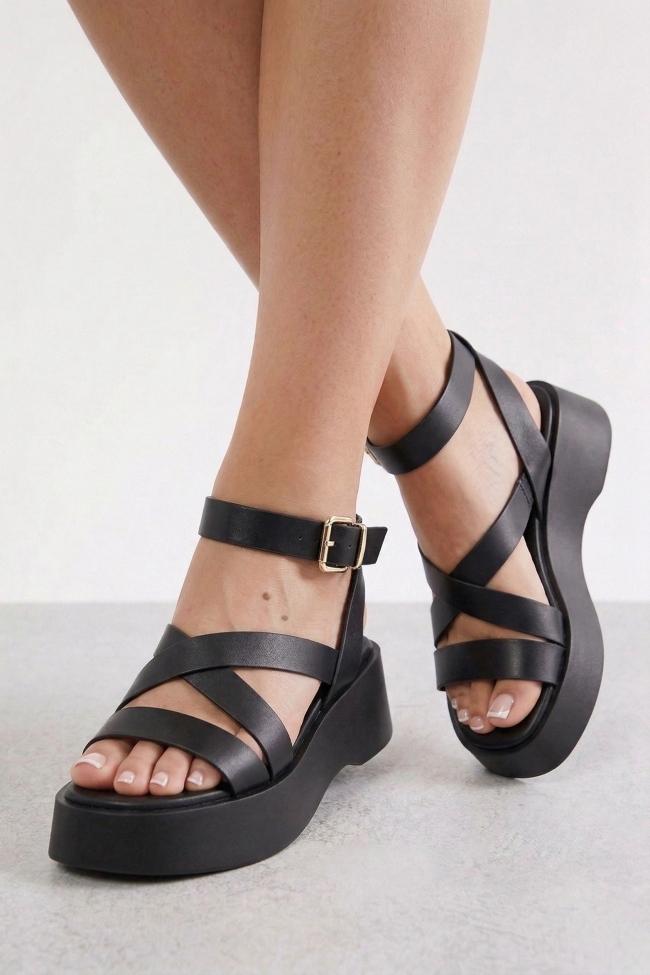 Sandale Flatform cu Barete Încrucișate & Catarame