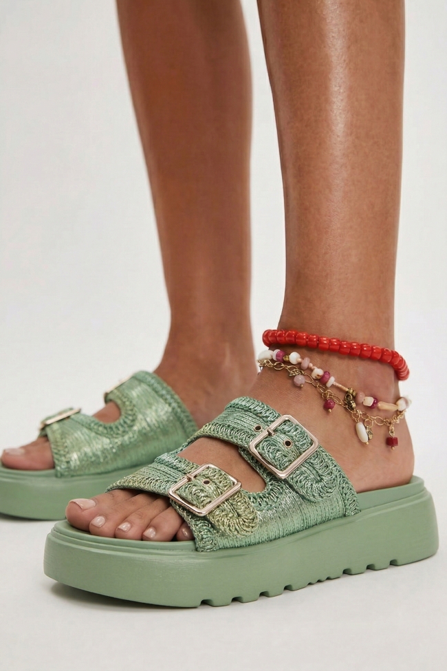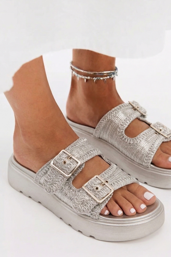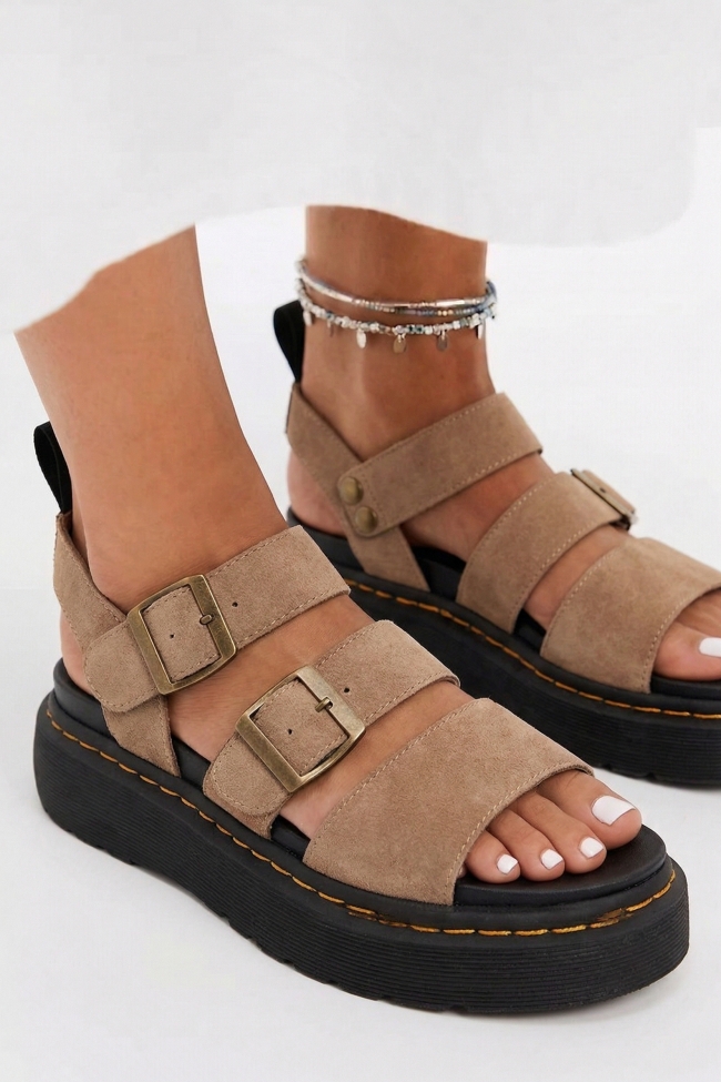 Sandale Flatform cu Barete Duble & Catarame