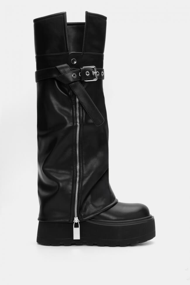 Cizme cu Efect de Fașă Rulabilă & Curele Decorative