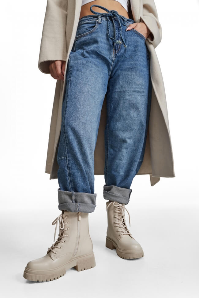 - Cu blugi skinny: Ținuta clasică atemporală! Poartă o pereche de biker boots cu blugi skinny și un pulover oversize. Rezultatul? Casual dar cool, ideal pentru plimbări în oraș și cafea cu fetele.