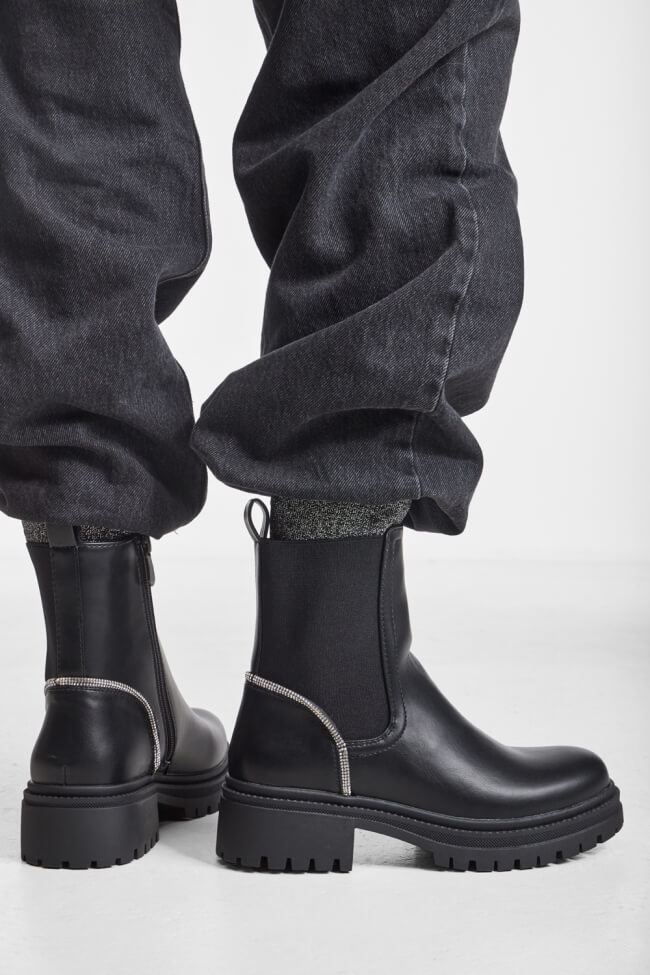 Nu pierde timp. Noua tendință este aici și nu este altceva decât urban vibes și influențe rock. Cu aceste biker boots, care se asortează cu infinite ținute, un lucru e sigur: sunt făcute să te însoțească peste tot.