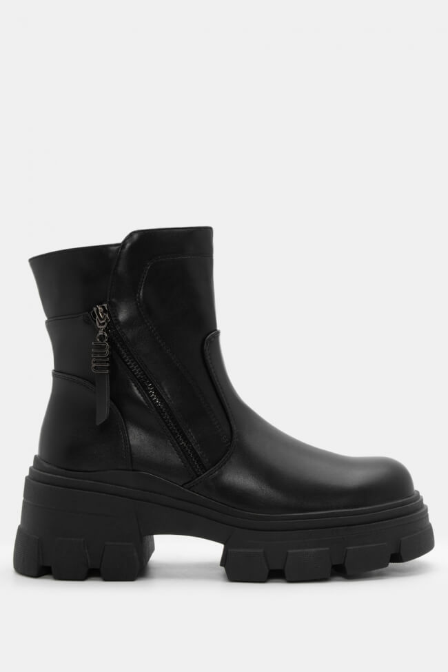 Botine cu Talpă cu Tălpi și Fermuar în Față