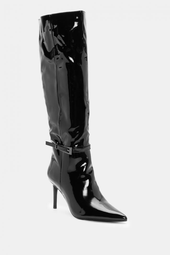 Cizme cu Efect de Falduri Pliante & Barete Decorative