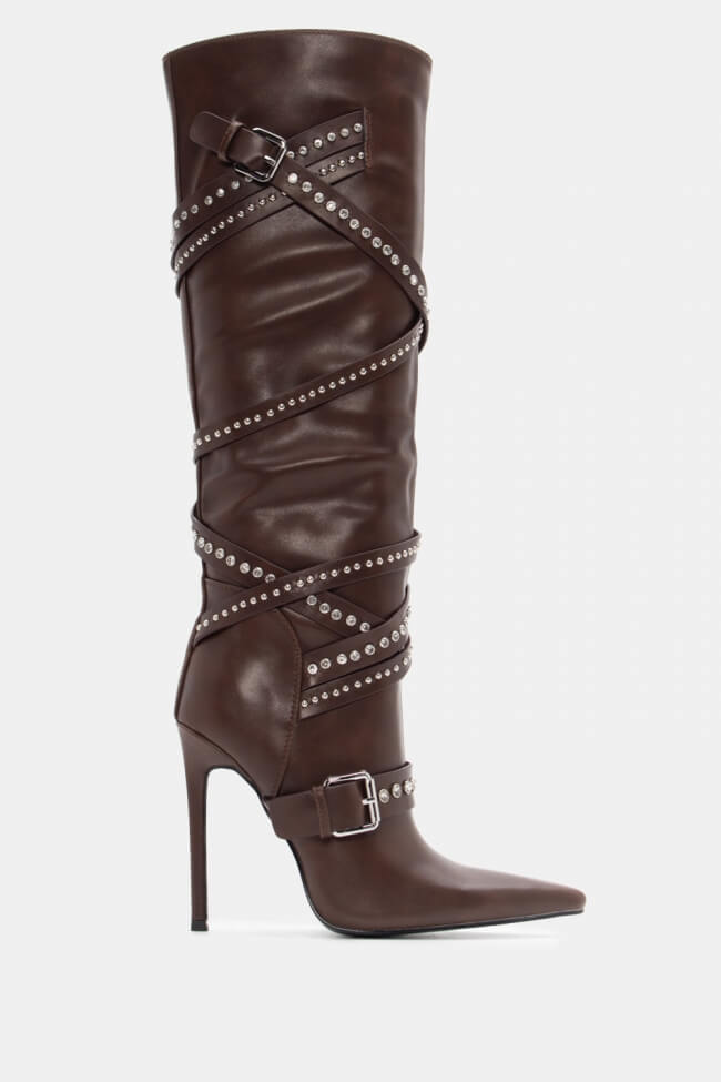 Cizme Ascuțite cu Curele Multiple cu Ținte