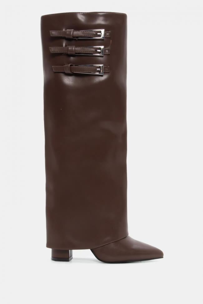 Cizme Ascuțite cu Efect de Falduri Suprapuse & Catarame