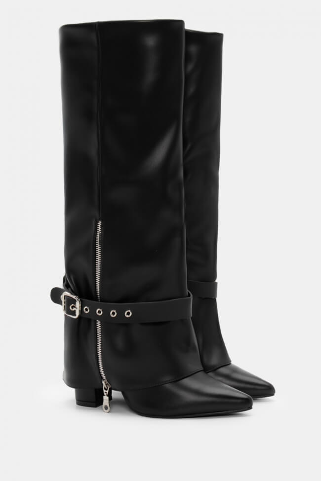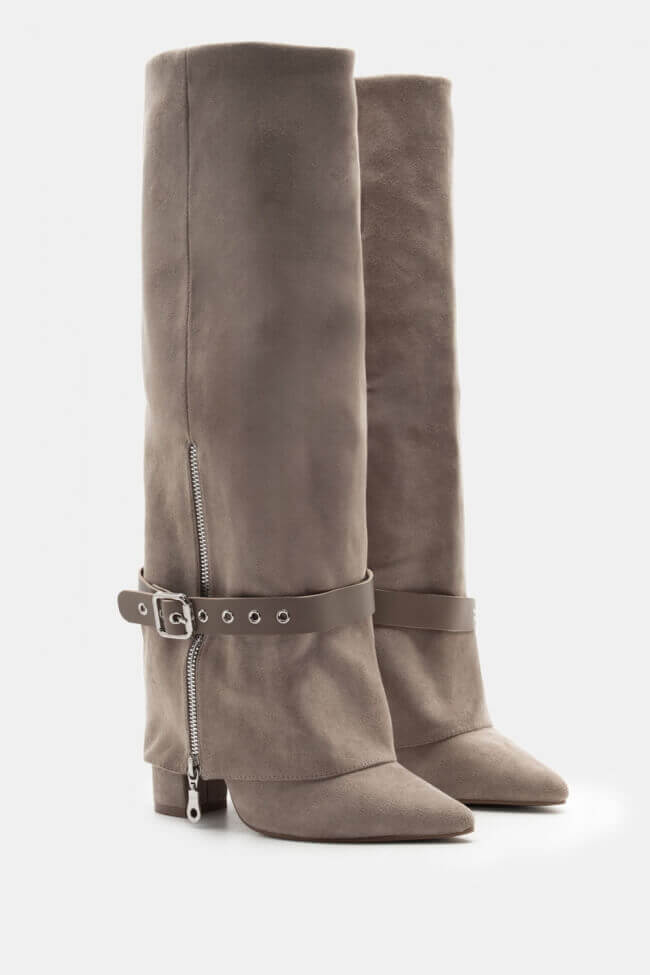 Cizme cu efect de pliabilitate & fermoar decorativ