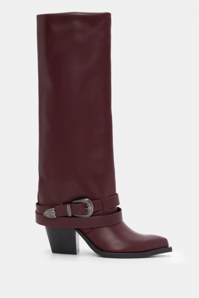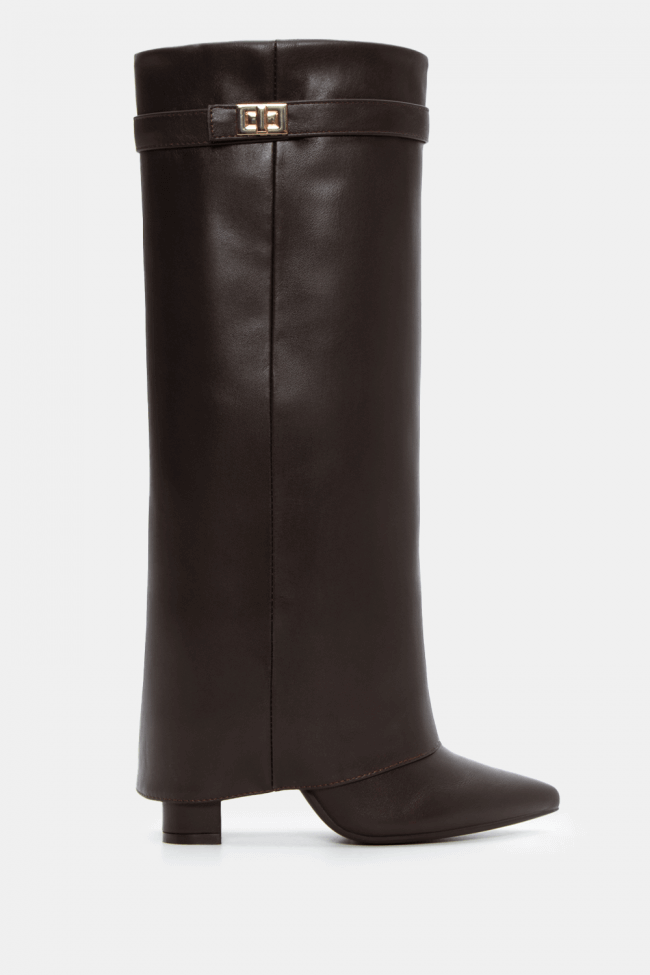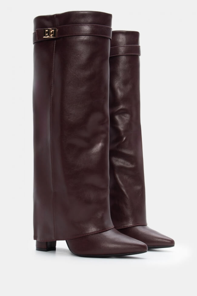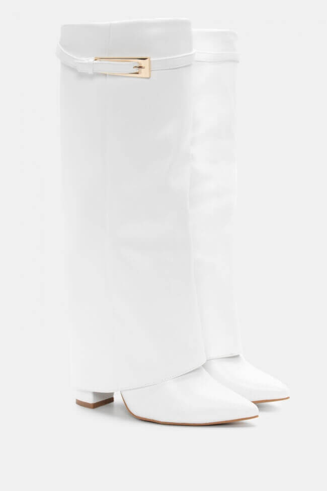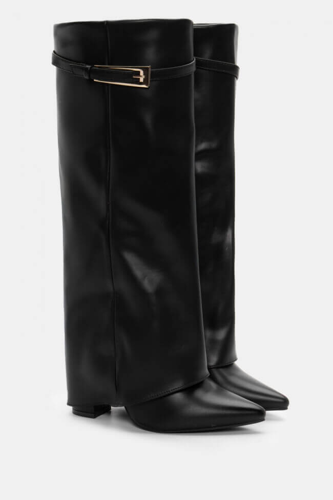 Cizme cu Vârf Ascuțit cu Efect de Manșetă Pliabilă & Curea Decorativă